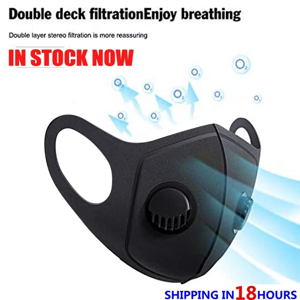 Дышащий черный маска для лица с двойной фильтрацией, Очищающий возд...