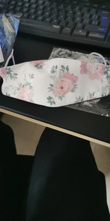 маска удобная, но цвет оказался светлее. цветочки по краям маски, середина просто белая.