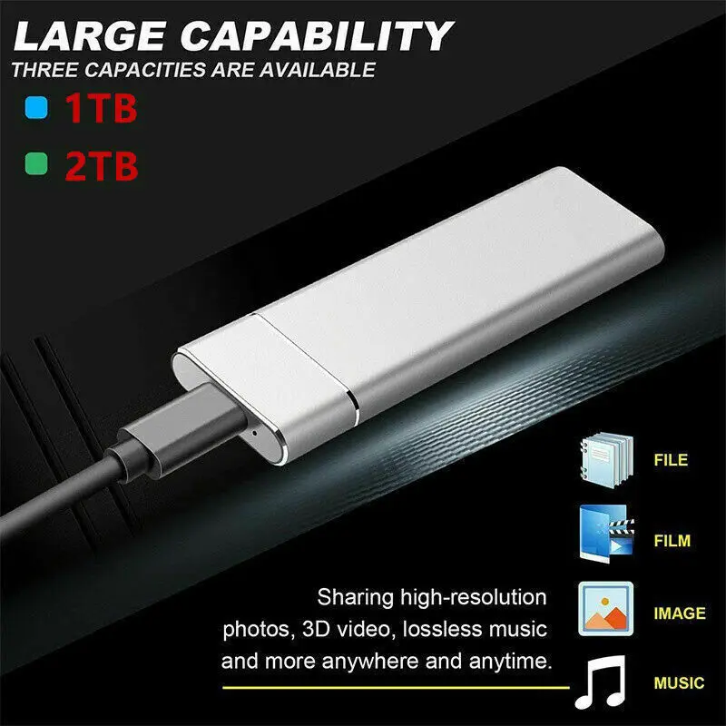 Новый 1,8 дюймов M.2 SSD накопитель 1Гб ТБ 2 ТБ внешний жесткий диск Портативный Тип C 3,1 USB Твердотельный накопитель (SSD жесткий диск для ноутбука, настольного компьютера, 5400 об/мин