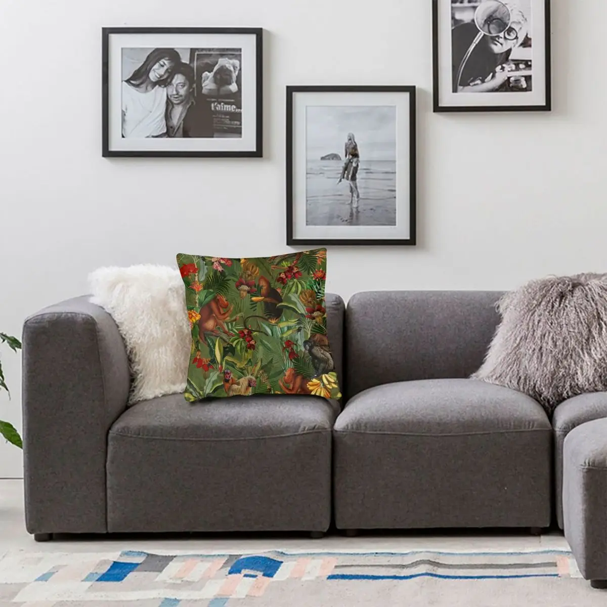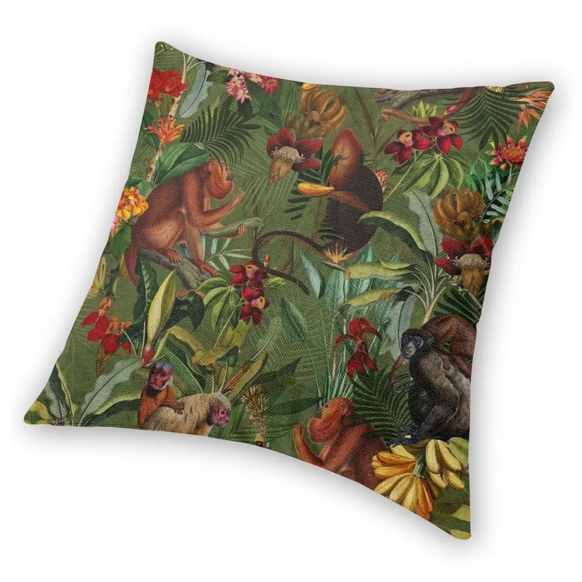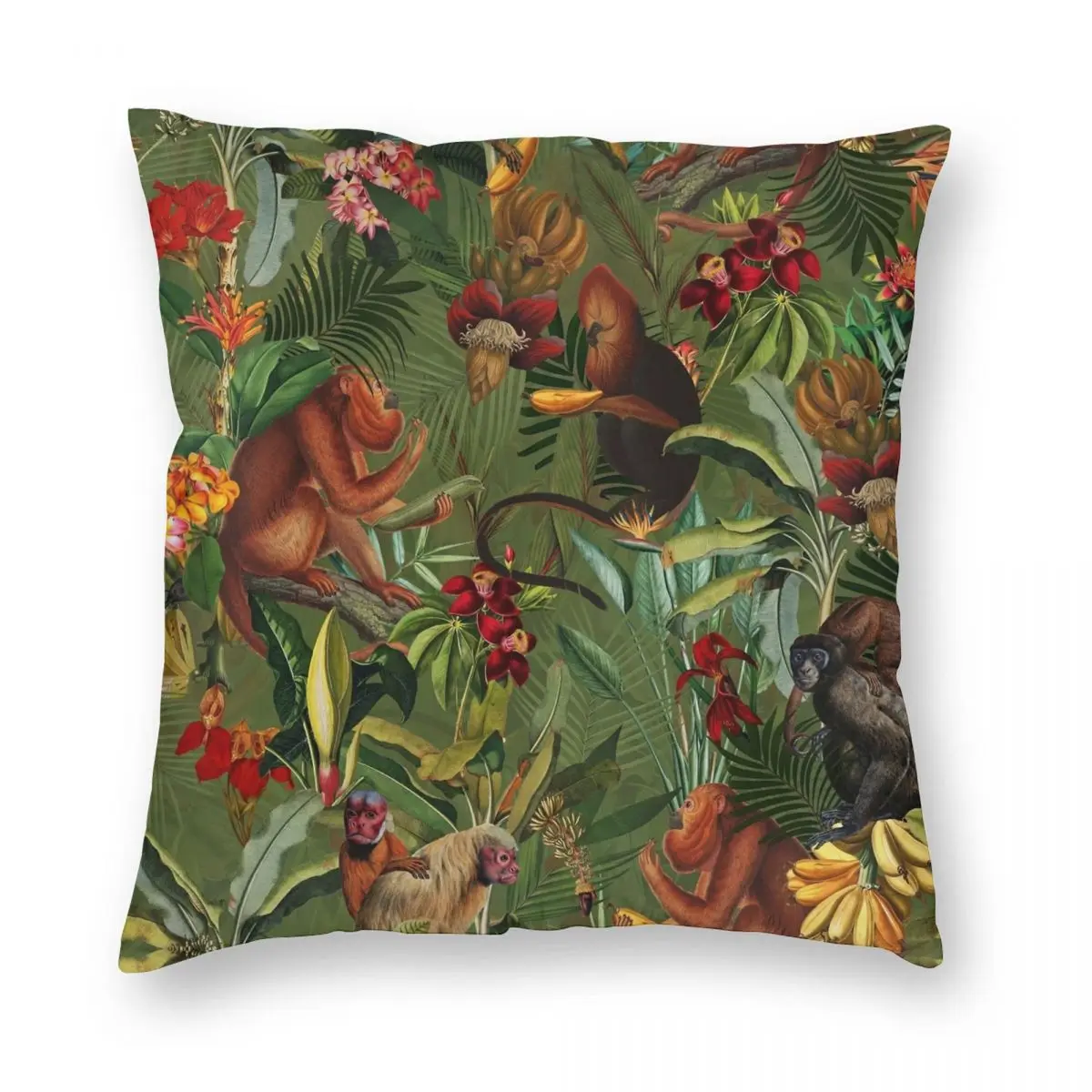 Тропическая обезьяна джунгли темно-зеленая Подушка Чехол из полиэстера и льна бархатная креативная Декоративная Подушка на молнии чехол для комнаты наволочка для подушки