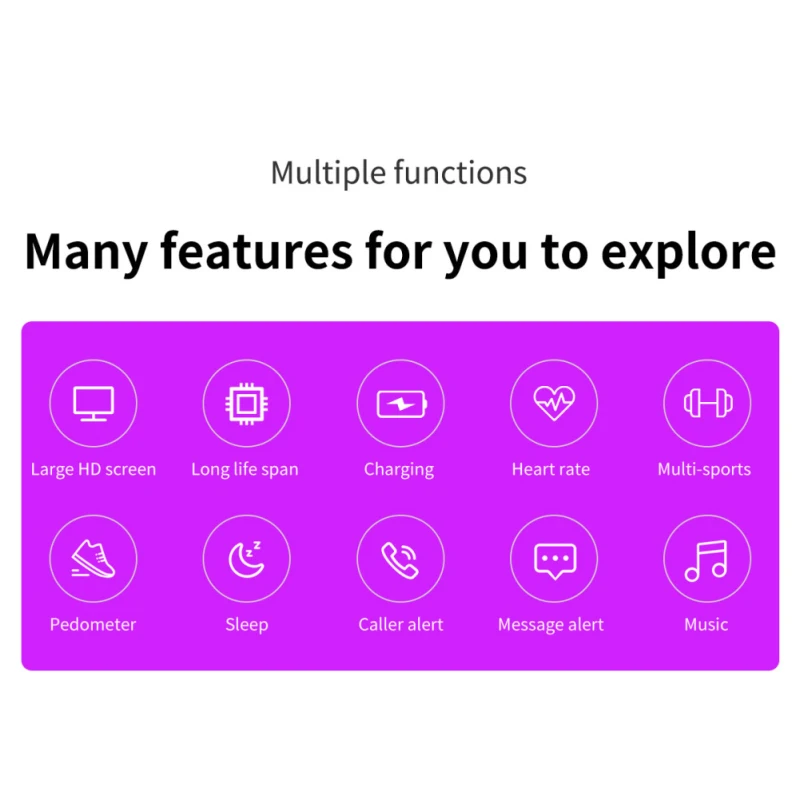 IP65 Водонепроницаемый для повседневной жизни, мульти-спортивный режим, подходит для занятий спортом на открытом воздухе. Автоматически записывает ежедневный шаг движения и данные о калориях.