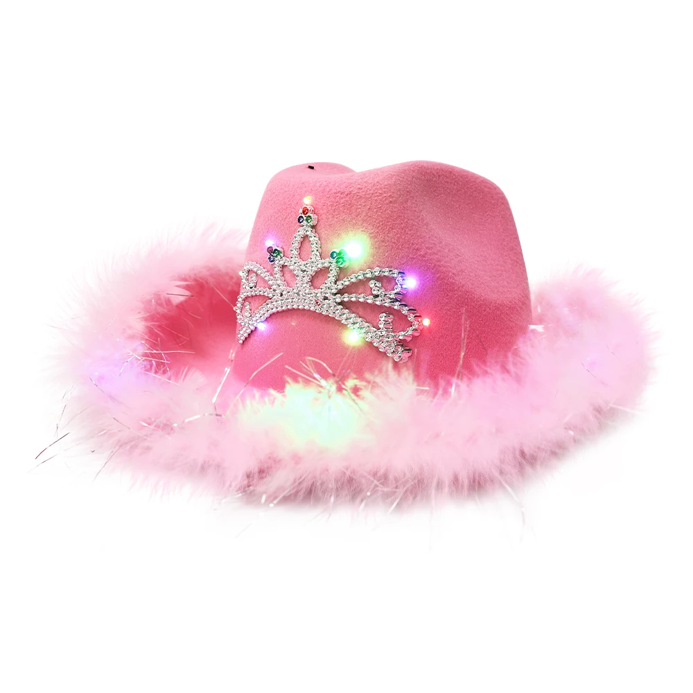 Женская ковбойская шляпа, розовая ковбойская шляпа со светодиодами,...