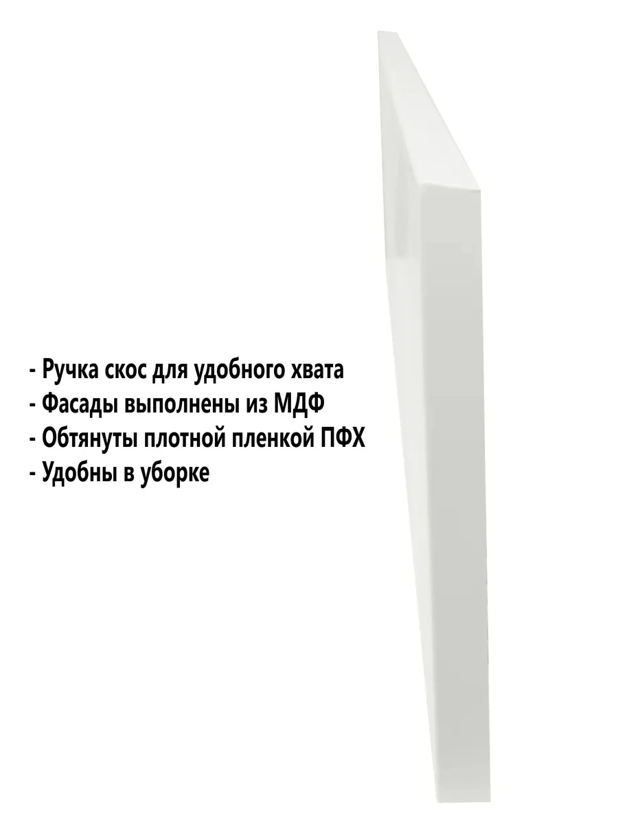 Фасады выполнены из ЛДСП. Имеют скошенную геометрию для более удобного цепа при открывании.