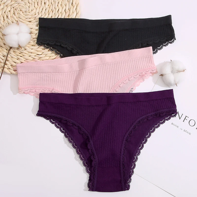 Трусы женские кружевные с низкой талией, 3 шт.компл., M-2XL