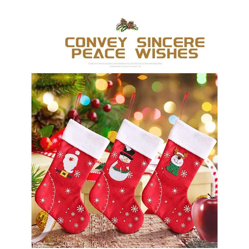 Тканевые рождественские чулки, носки, снеговик, Санта-Клаус, олень, Рождественский Подарочный пакет для конфет, украшение для камина, рождественской елки, мешок для конфет