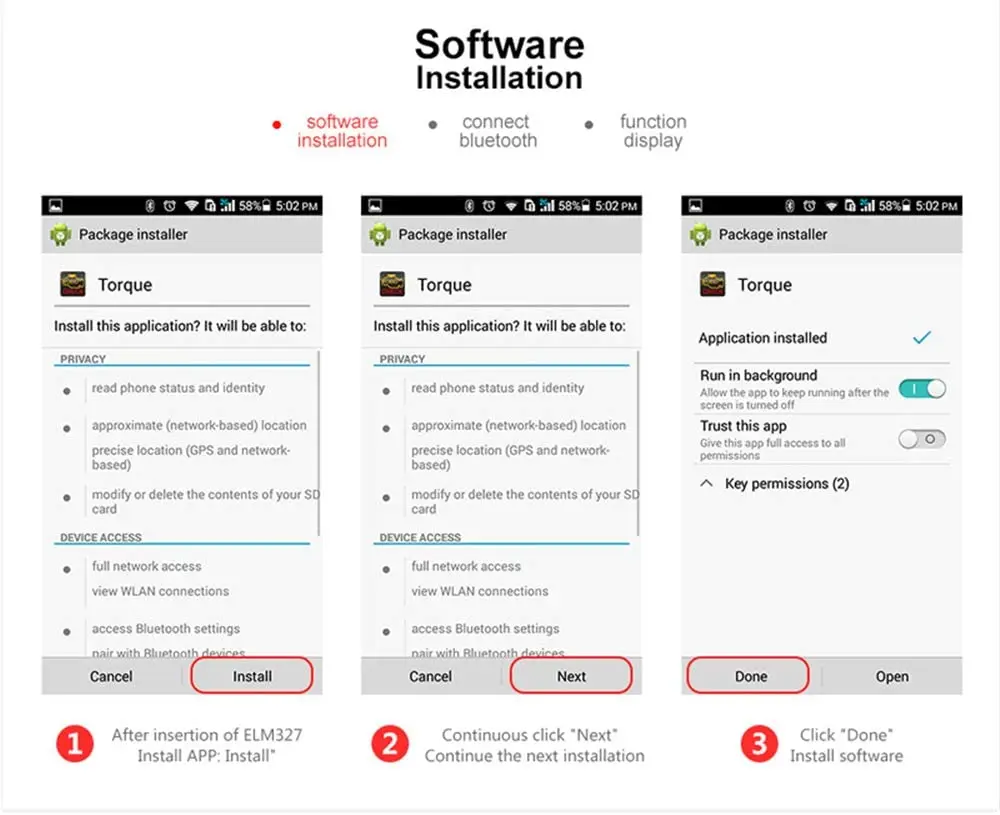 Это ELM327 suport TORQUE программное обеспечение для Android системы сотового телефона, OBDscope программного обеспечения для Symbian системы сотового телефона, PPC(Windows Mobile) системы сотового телефона, ScanMaster-ELM для ПК и т. Д.