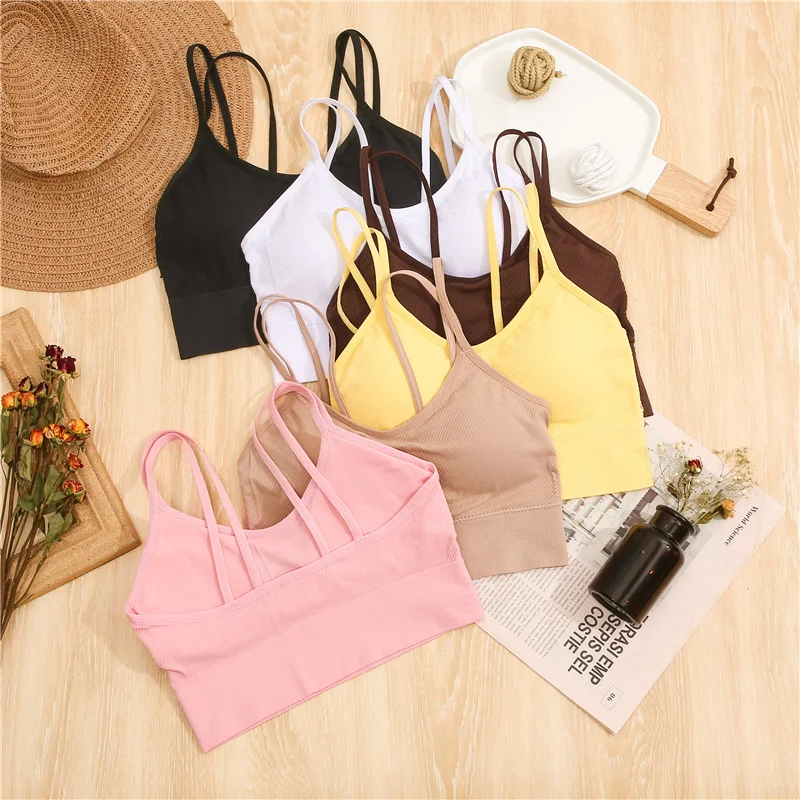 Женский укороченный топ, бесшовное нижнее белье, Майки с двумя бретельками, женское сексуальное нижнее белье, женский бюстгальтер без спинки, майка