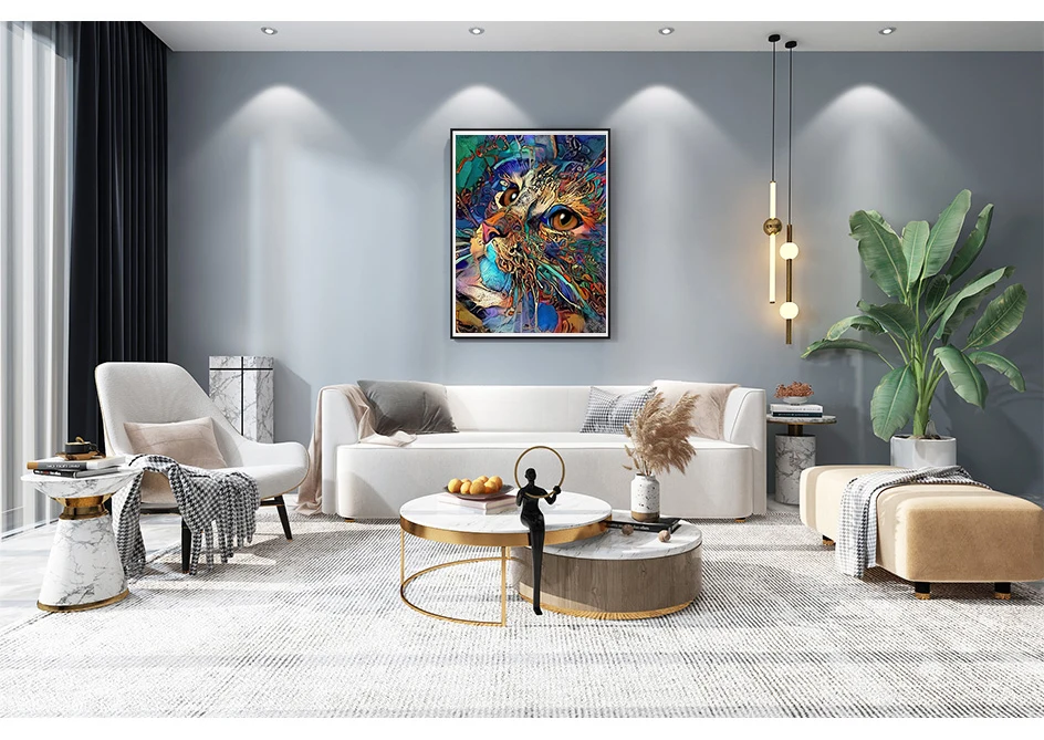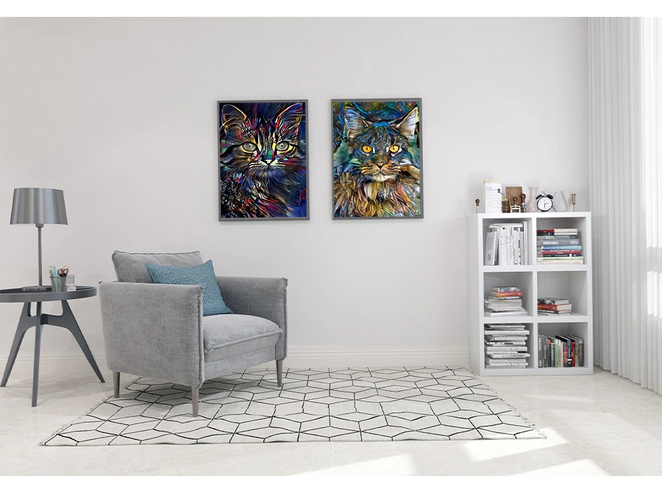 Алмазная вышивка с квадратнымикруглыми стразами, картина с кошками,...