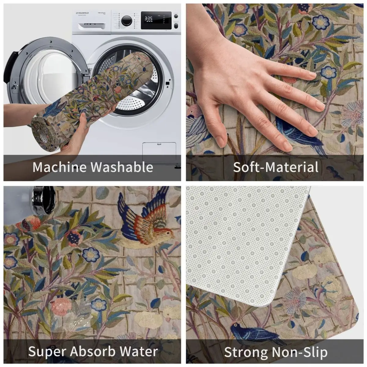 Вильям Моррис, коврик, подкладка для ног, полиэстер, нескользящий, водонепроницаемый, маслостойкий, для коридора, кухни, спальни, балкона, туалета