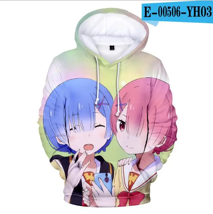 Толстовка МужскаяЖенская с 3D-принтом, японская аниме Re:zero Twin ...