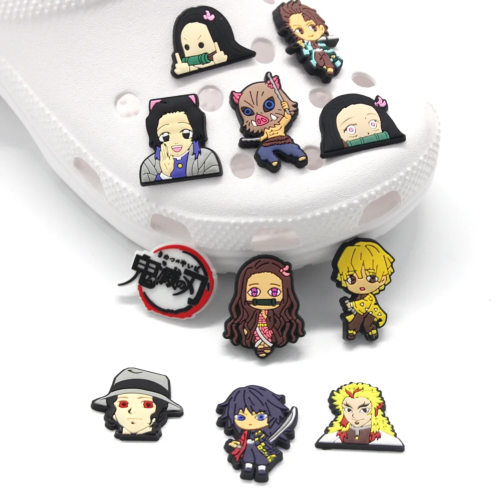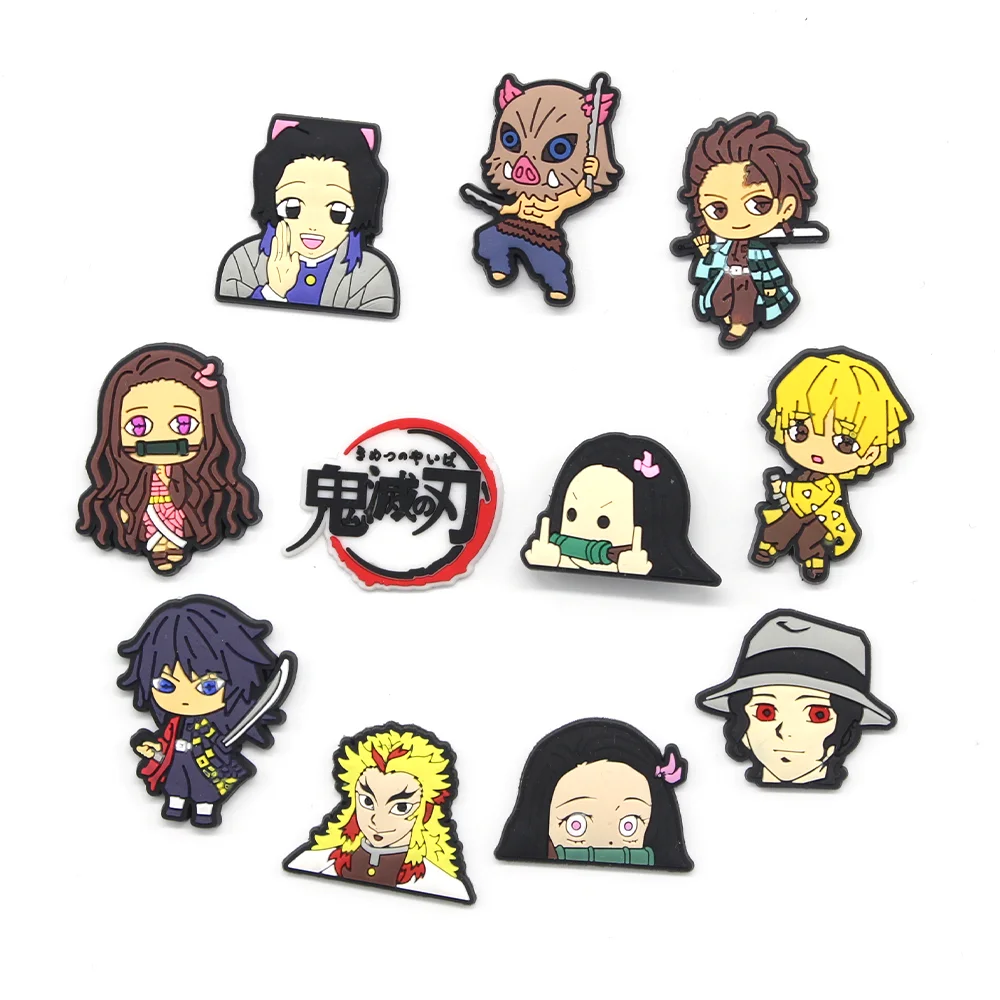 Лидер продаж, 1 шт., подвески для обуви из ПВХ для рассекания демонов, аниме, Мультяшные украшения сделай сам, аксессуары для обуви, Кроксы, унисекс, детские подарки на Рождество, jibz