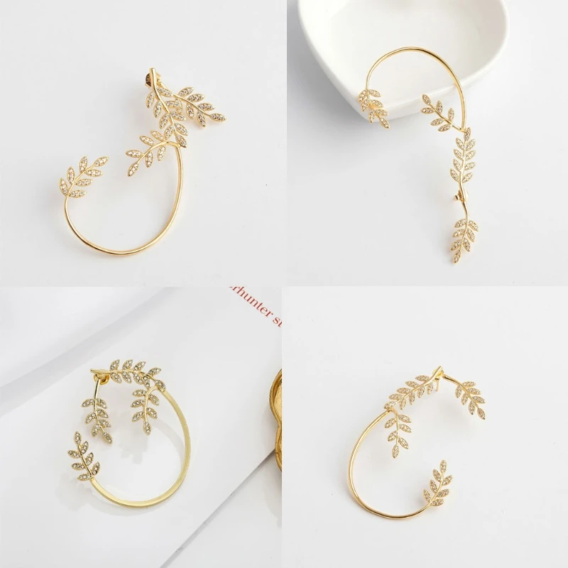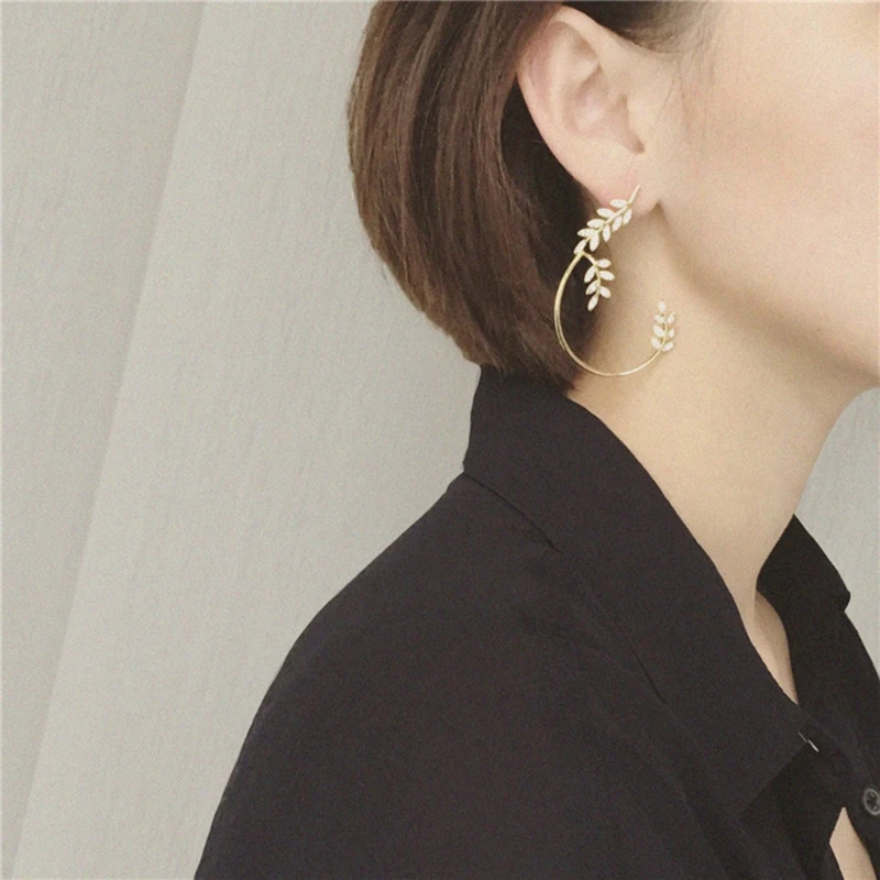1 шт., блестящие золотистые серьги-кольца с листьями на гусеничном ходу