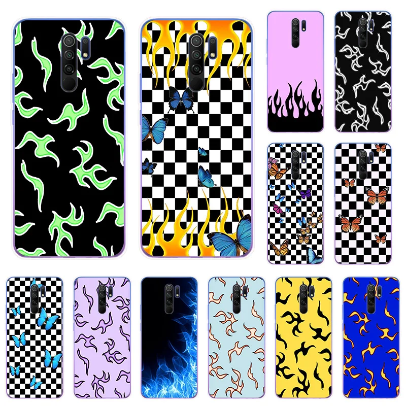 Мягкий чехол для телефона Xiaomi Redmi 9 9a 9C 8 8A 7A Note 10 9 9S 9T 8T 8 7 Pro Mi POCO X2 X3 F1 бабочка синее красное пламя огненный чехол