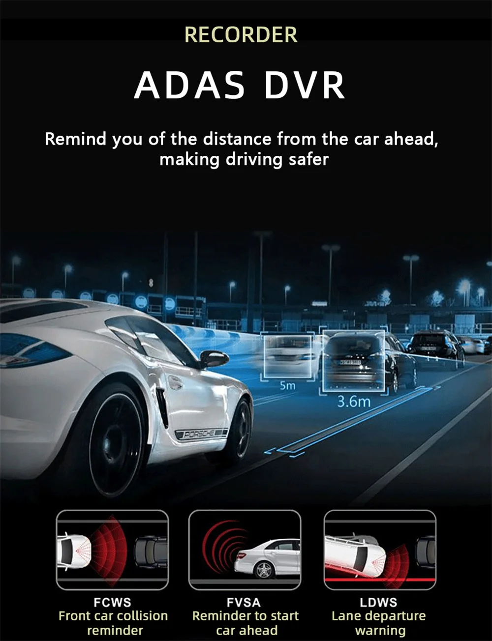 С функцией ADAS, с напоминанием о расстоянии транспортного средства, предупреждающим о столкновении, напоминанием об отклонении полосы движения