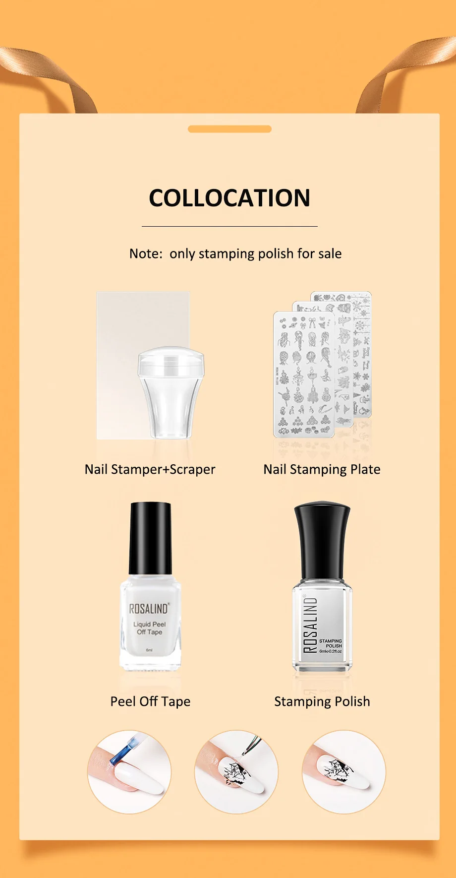 ROSALIND 6 мл набор стемпинга для ногтей золотой, серебряный, черный, белый цвет лак для печати ногтей сделай сам для дизайна ногтей
