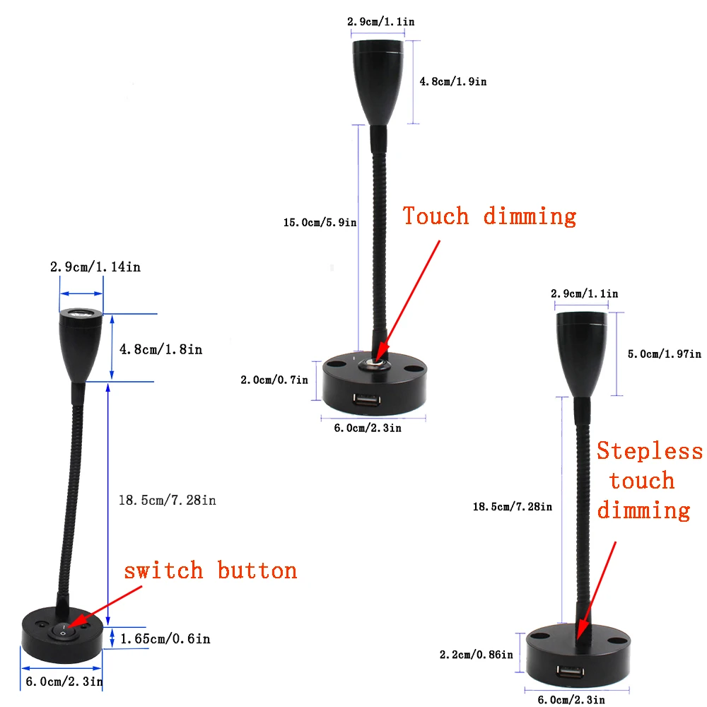 ХарактеристикиDimmable hose wall lamp with USB charging port