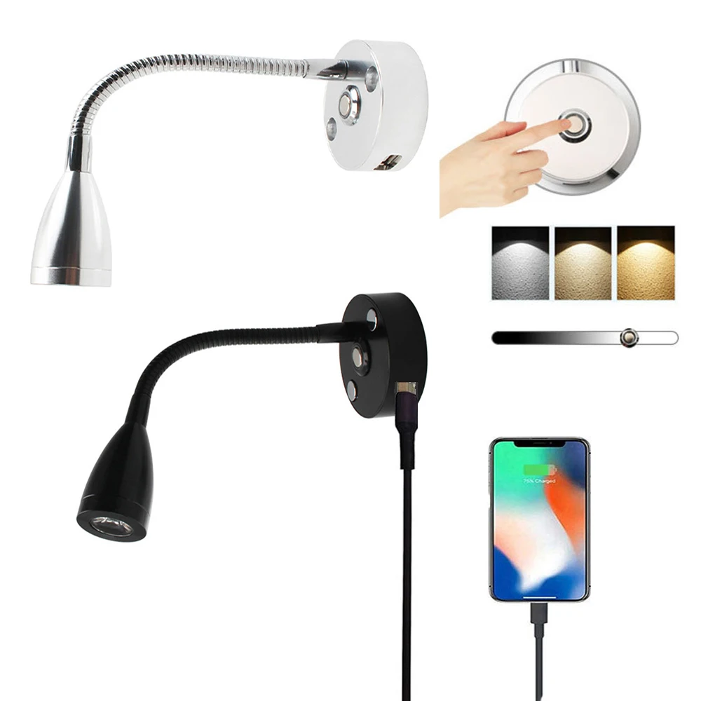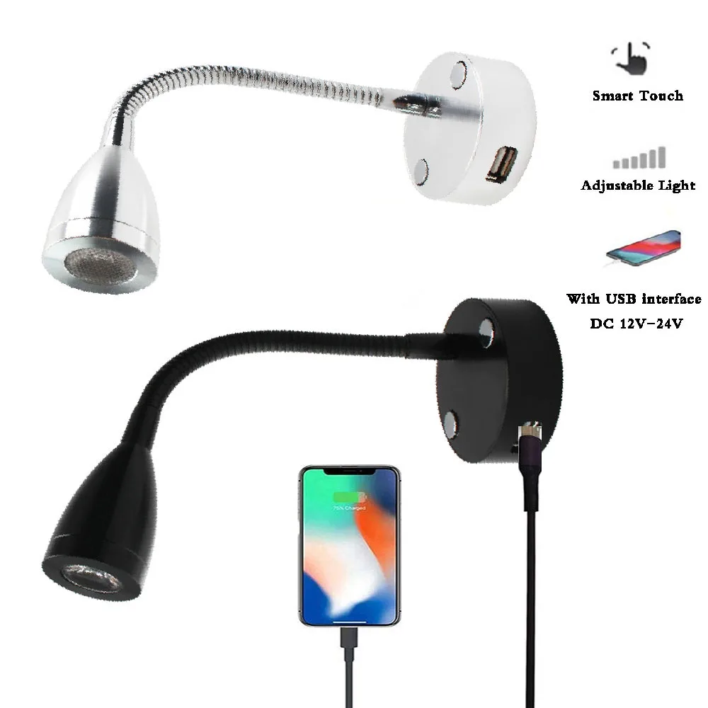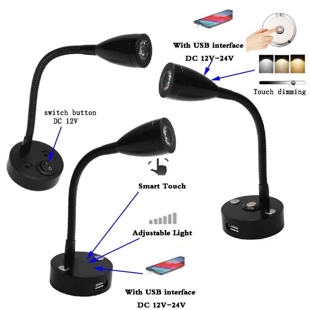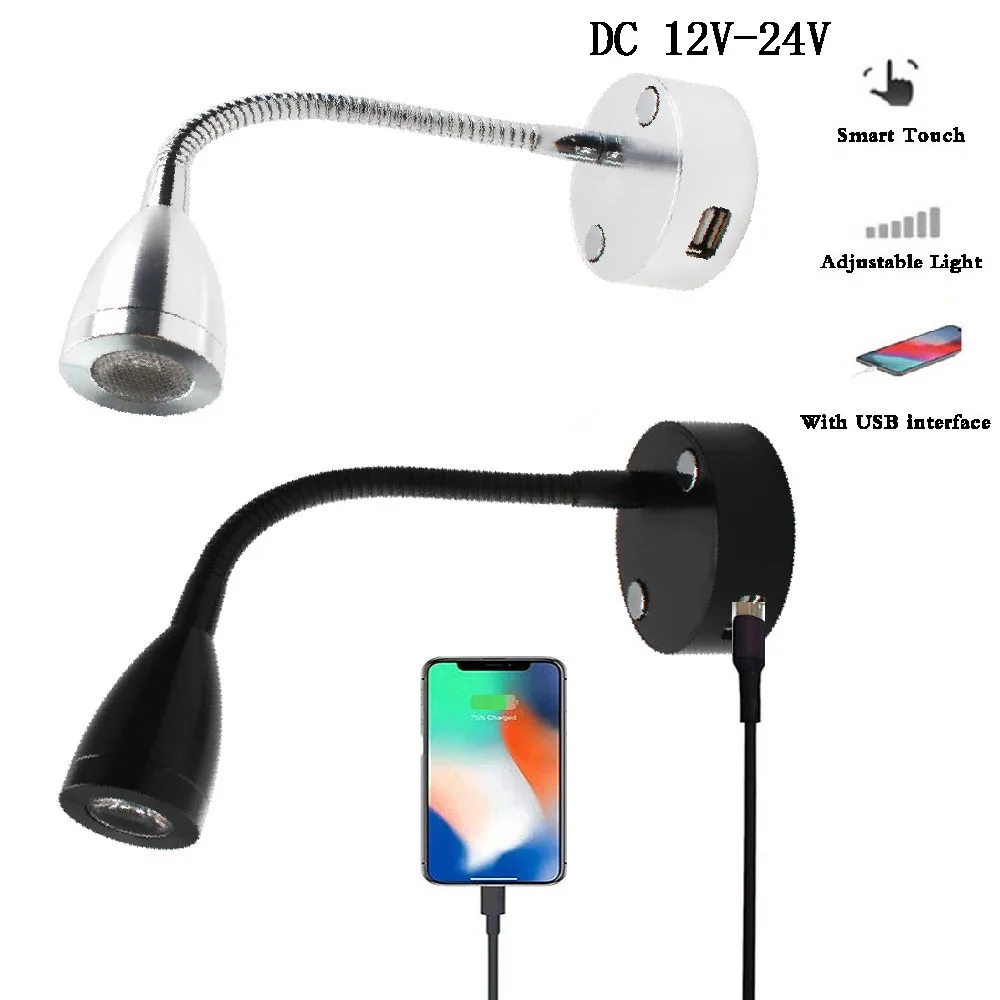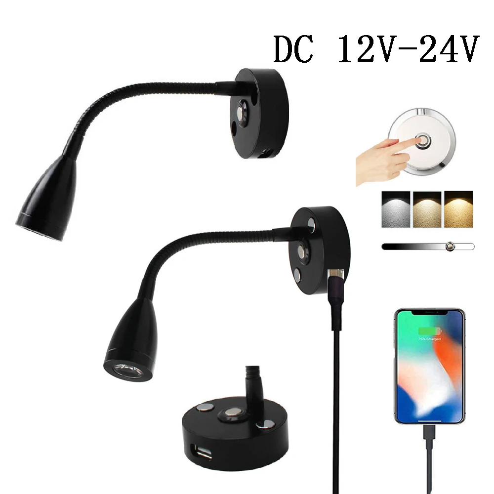 Светодиодный настенный светильник DWT с сенсорной регулировкой яркости, лампа для трейлеров и грузовиков, гибкий светильник с гибким шлангом для яхт, дома на колесах, прожектор с USB, 3 Вт
