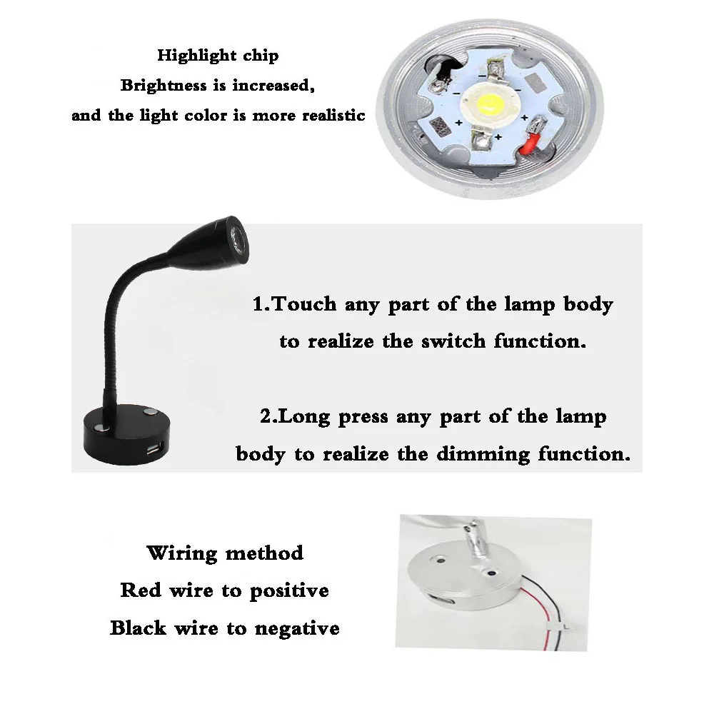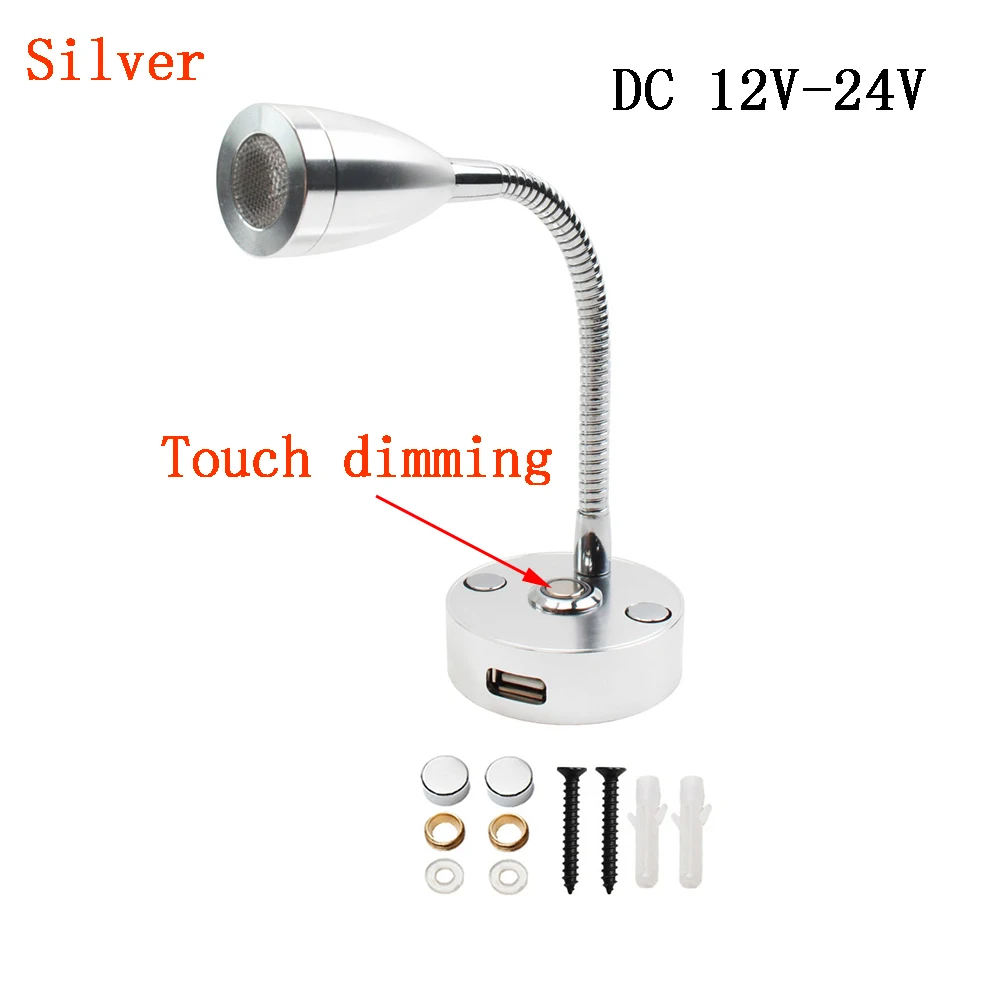 DWT 3W сенсорный светодиодный настенный светильник с регулируемой яркостью RV для грузовиков, гибкий светильник для шлангов, светильник для яхты, Домашний Светильник для каюты с USB