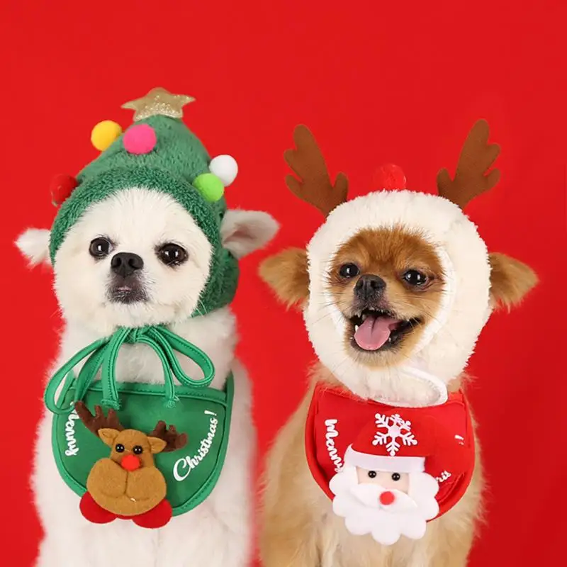 Название: Рождественская шапка для домашних животных, подходящая к тому же стилю, слюнявчик, полотенце