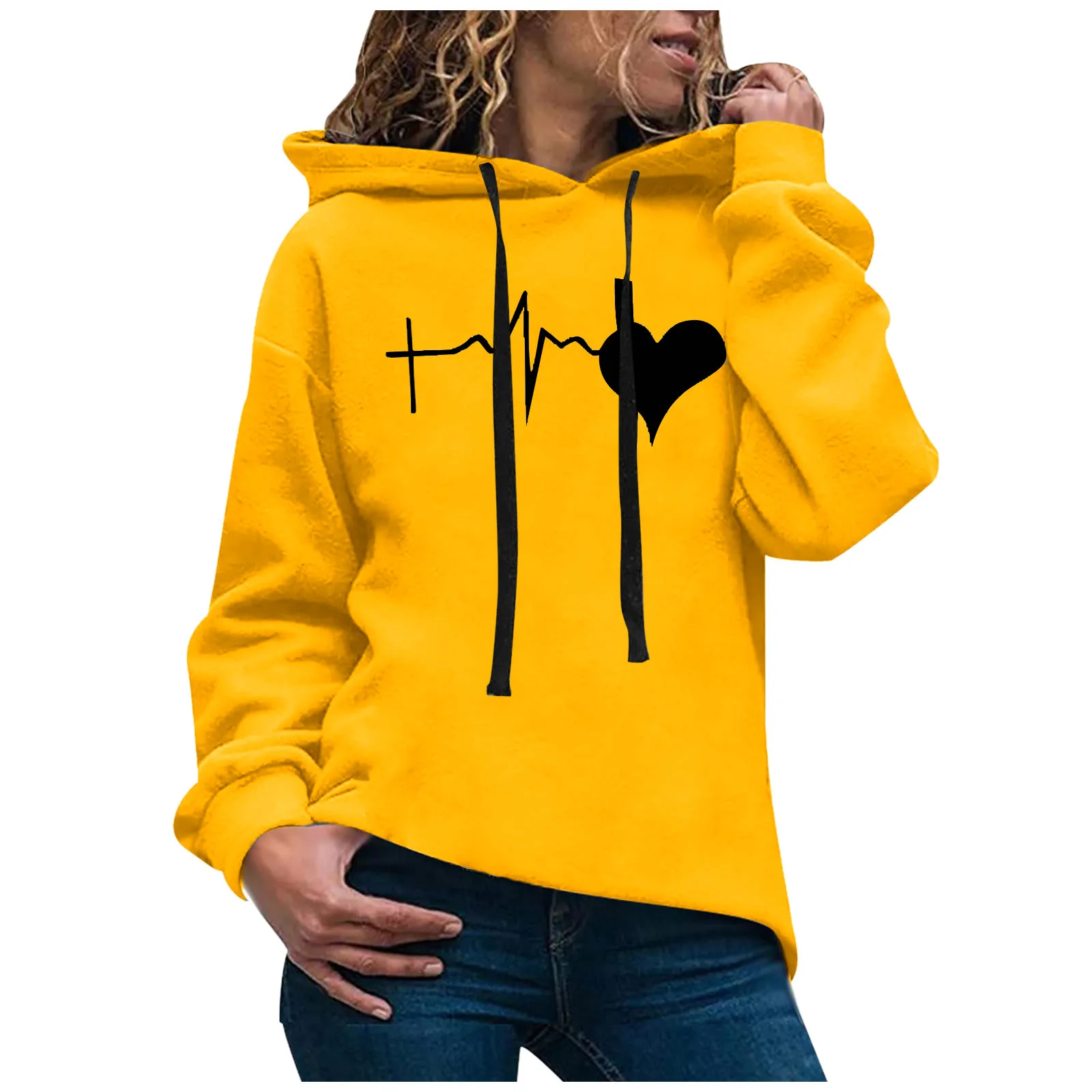 Женские толстовки с капюшоном, модные пуловеры с длинным рукавом и принтом сердечек, осенняя Повседневная Свободная Женская одежда, Женская толстовка