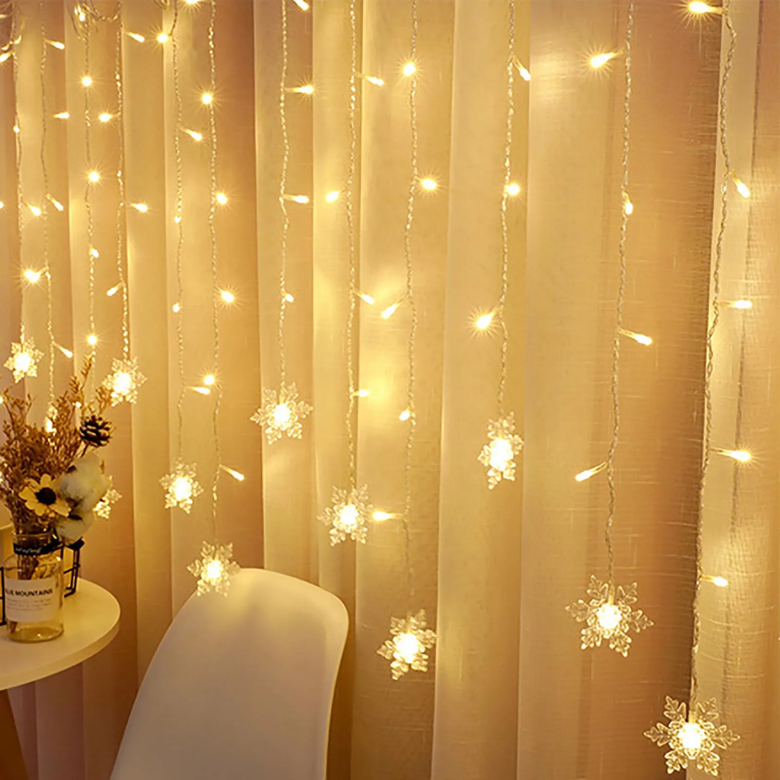 4 метра 90LED Рождественское украшение занавеска Снежинка светодиодная гирлянда мигающие огни Водонепроницаемая Праздничная Вечеринка Подключаемая волна