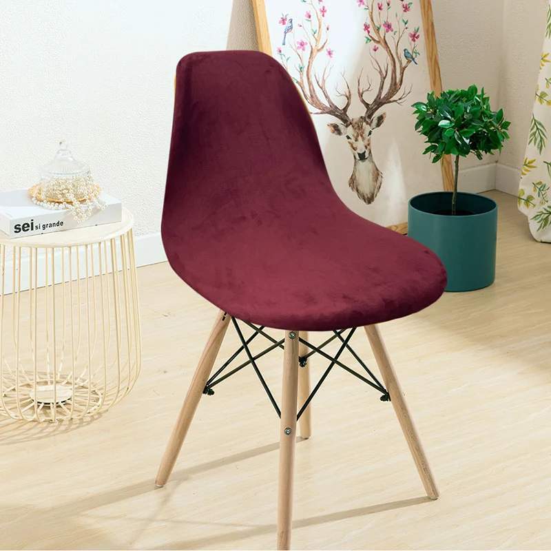 Бархатные чехлы на стулья, ракушка из спандекса, однотонный чехол н...