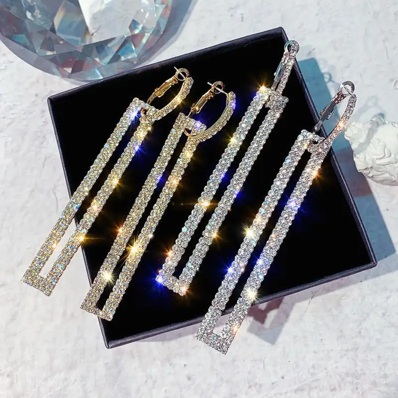 Роскошные Длинные прямоугольные Висячие серьги для женщин геометрич...