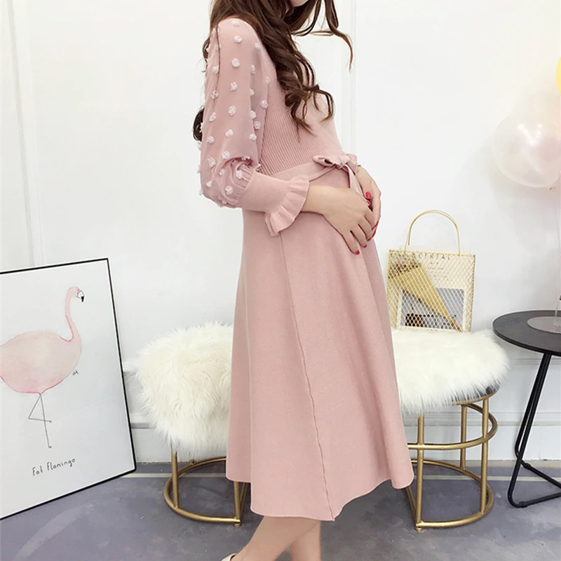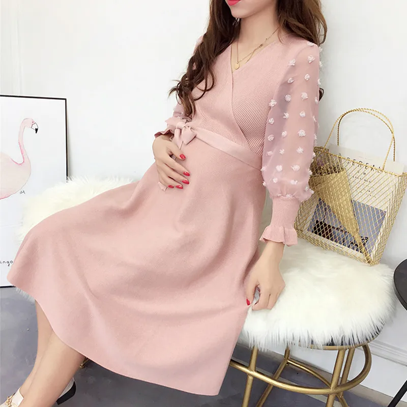 Одежда для беременных вязаные платья для беременных нижнее платье для беременных с V-образным вырезом и длинным рукавом зимняя верхняя одежда для беременных женщин