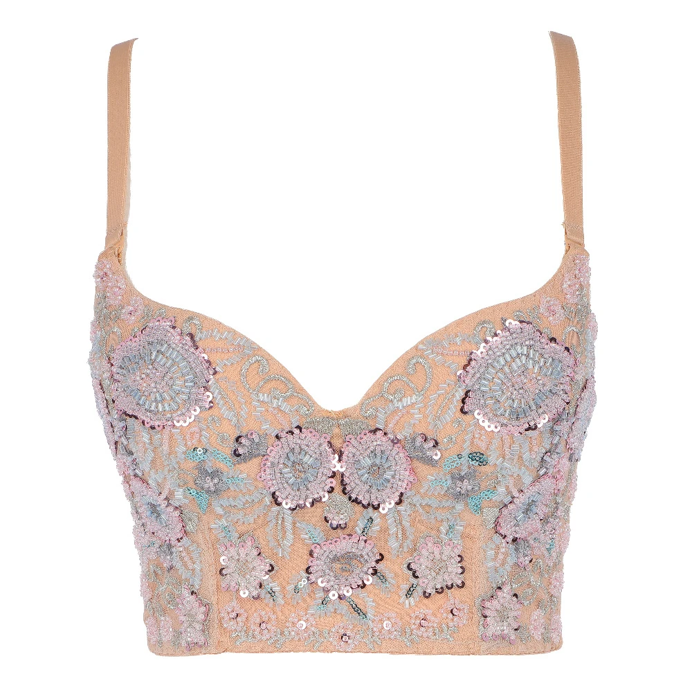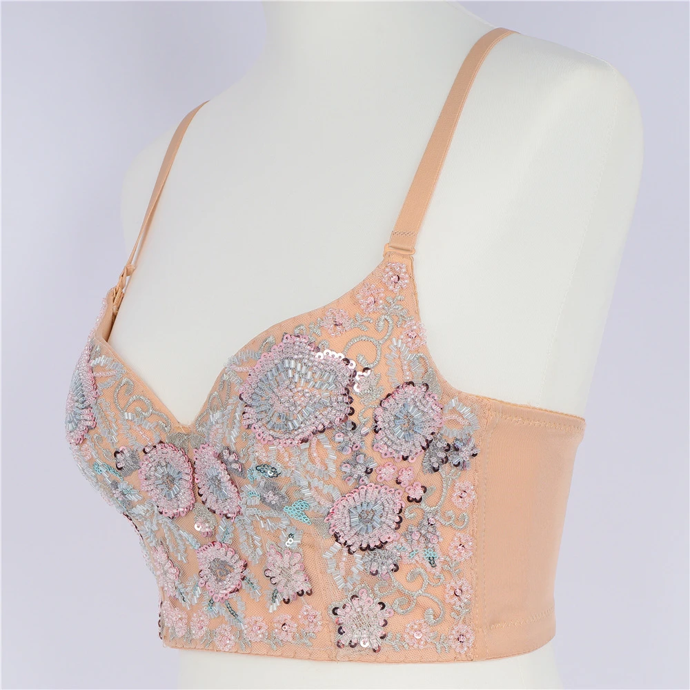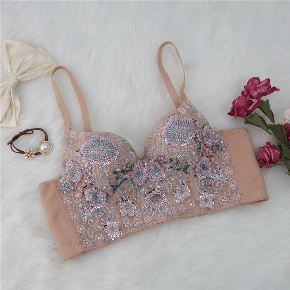 Женский бюстгальтер с чашками пуш-ап и вышивкой бисером