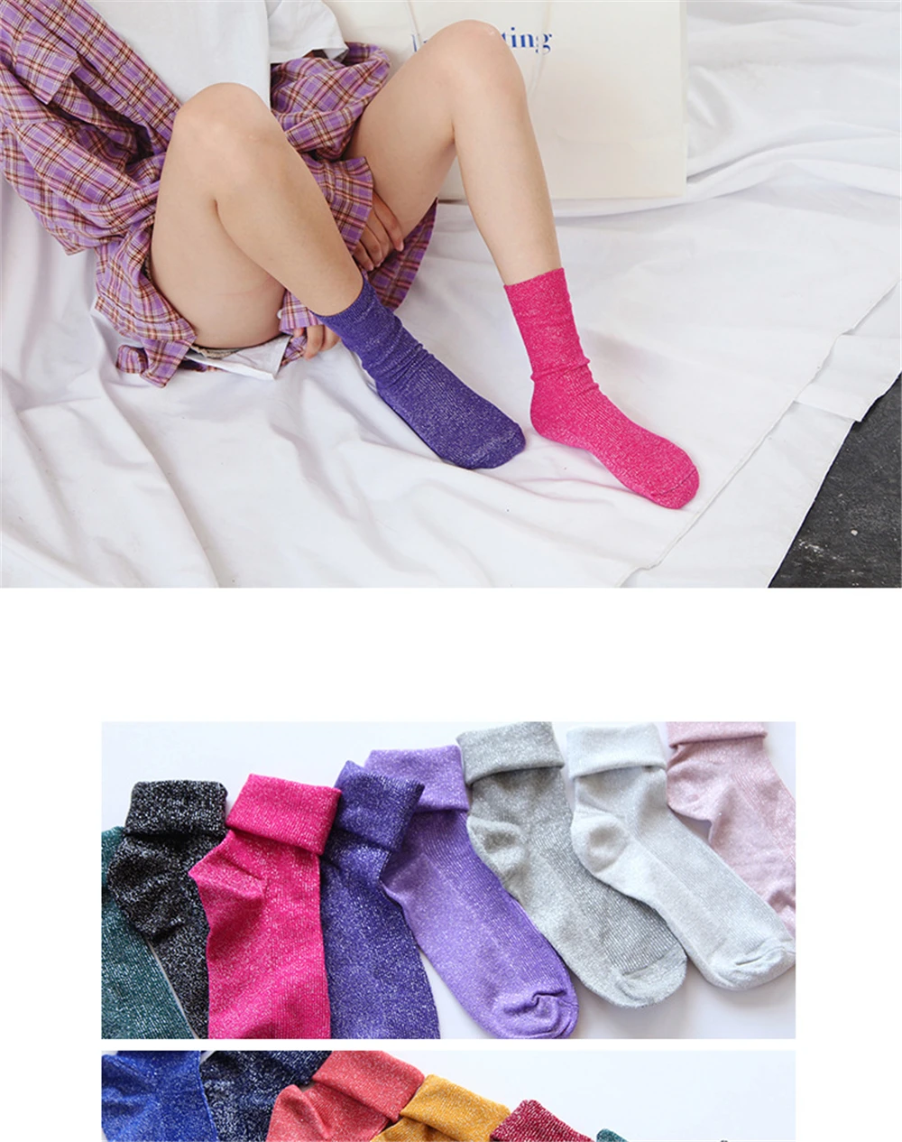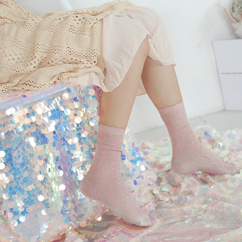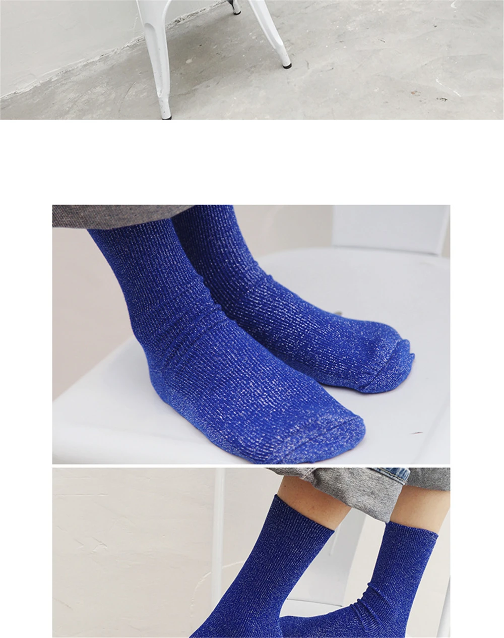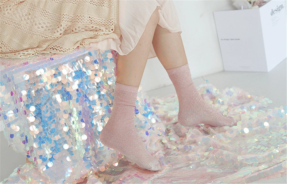 Носки женские, хлопковые, однотонные, блестящие, с металлическими л...