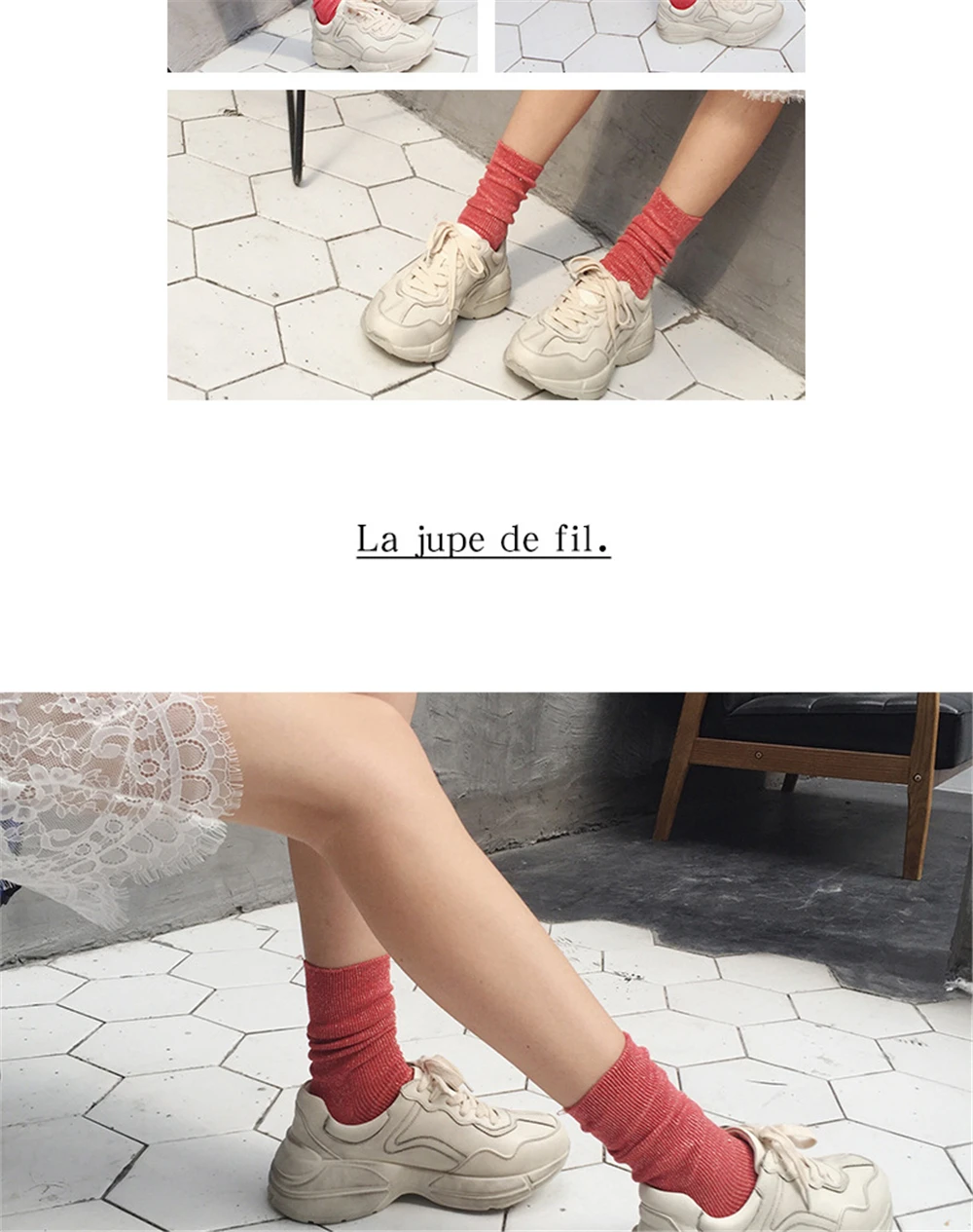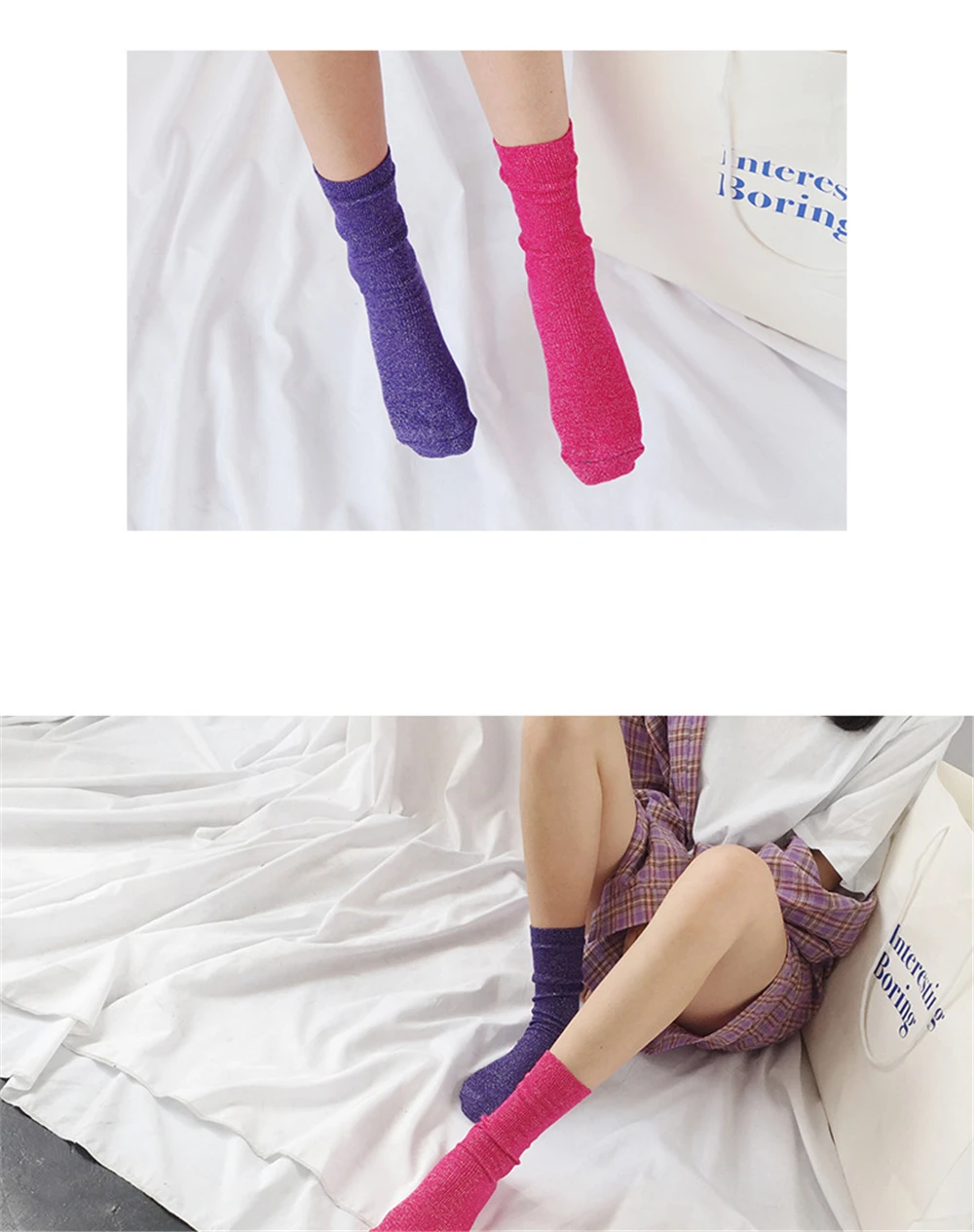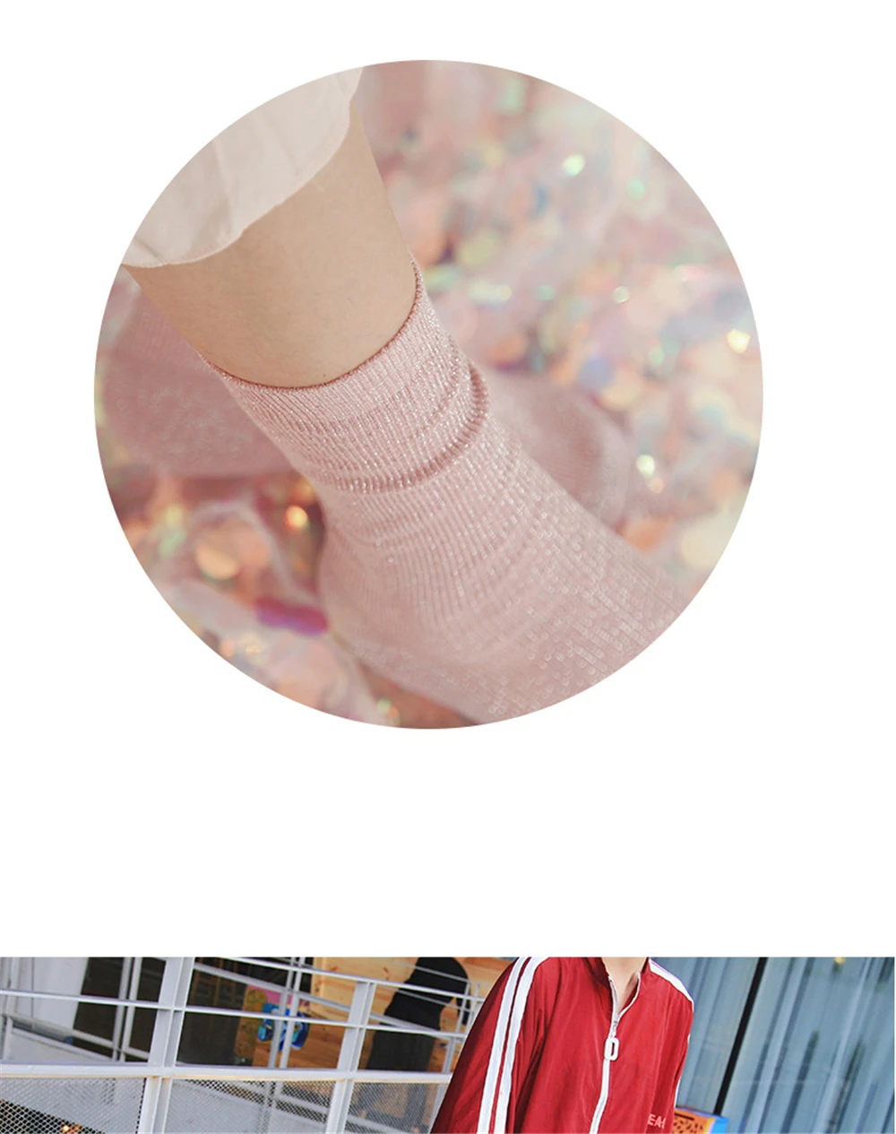 Носки женские, хлопковые, однотонные, блестящие, с металлическими л...