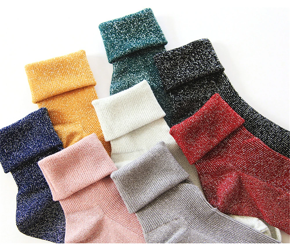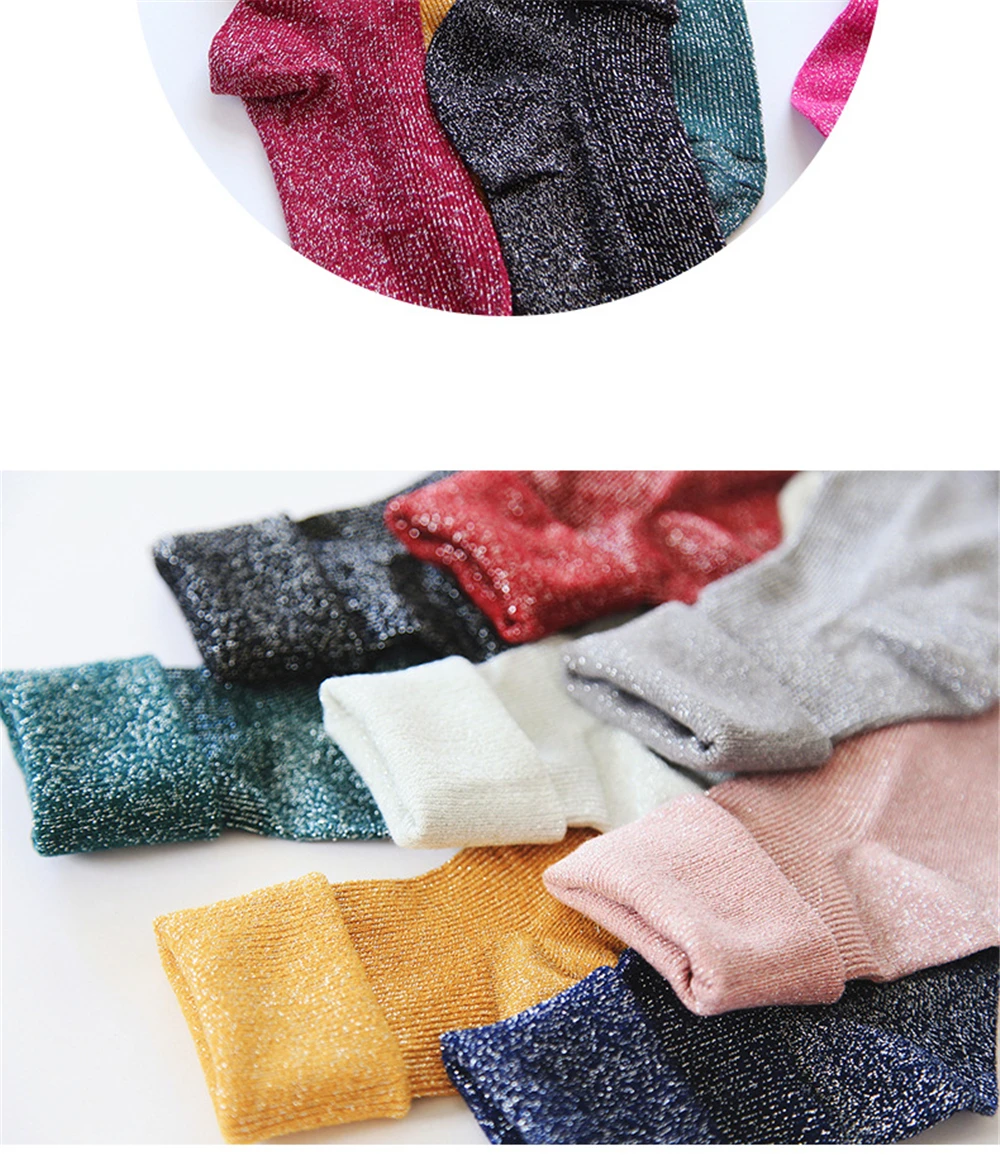 Новинка, модные женские осенне-зимние блестящие мягкие разноцветные арт-носки, блестящие рождественские носки