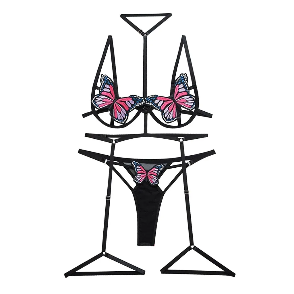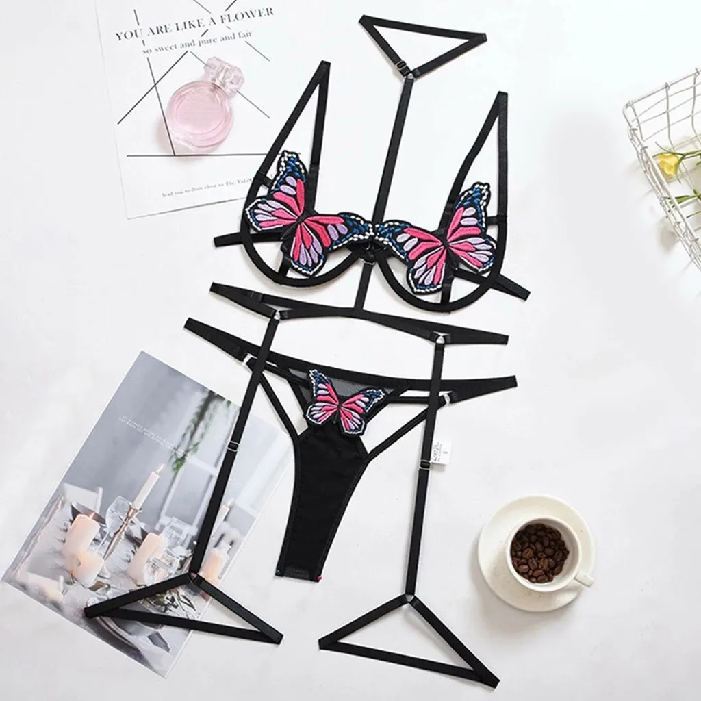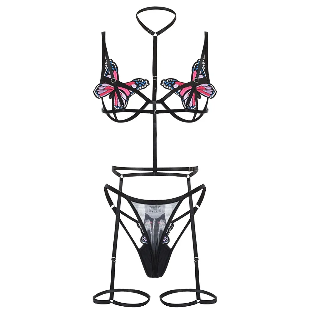 Эротическое нижнее белье, сексуальное женское нижнее белье с бабочками, прозрачное чувственное женское нижнее белье, женское нижнее белье, сексуальный комплект нижнего белья