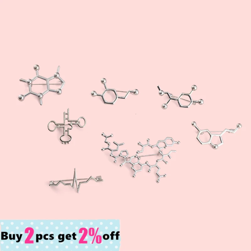 Броши с молекулярной структурой, значки с химической формулой, инди...