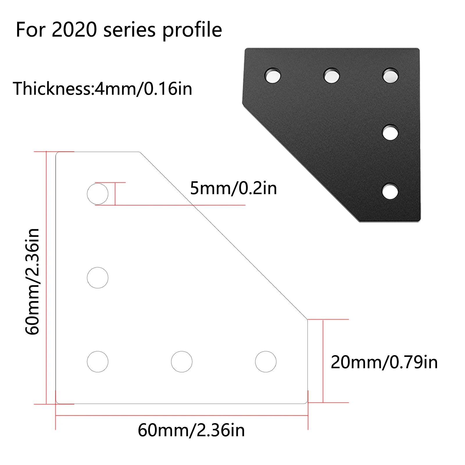 10 шт 5 отверстий 2020 Алюминий экструзионный соединитель пластин комплект, 10 pcs L Форма Алюминий