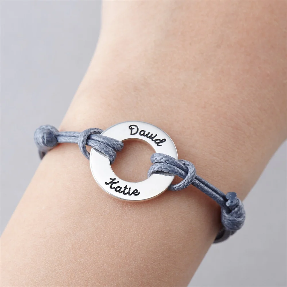 Индивидуальный именной браслет, персонализированный Круглый браслет из нержавеющей стали, регулируемый веревочный браслет, лучший подарок для нее
