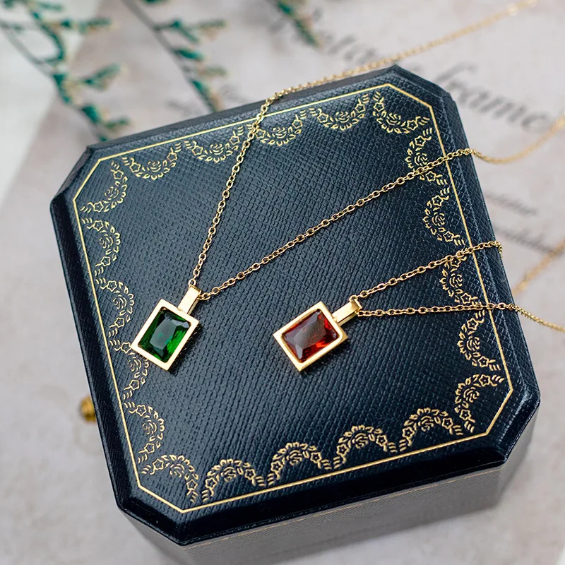 Лидер продаж, геометрическое квадратное ожерелье из нержавеющей стали с зеленым цирконом, женское минималистичное ожерелье-чокер, рождественский подарок, ювелирные изделия