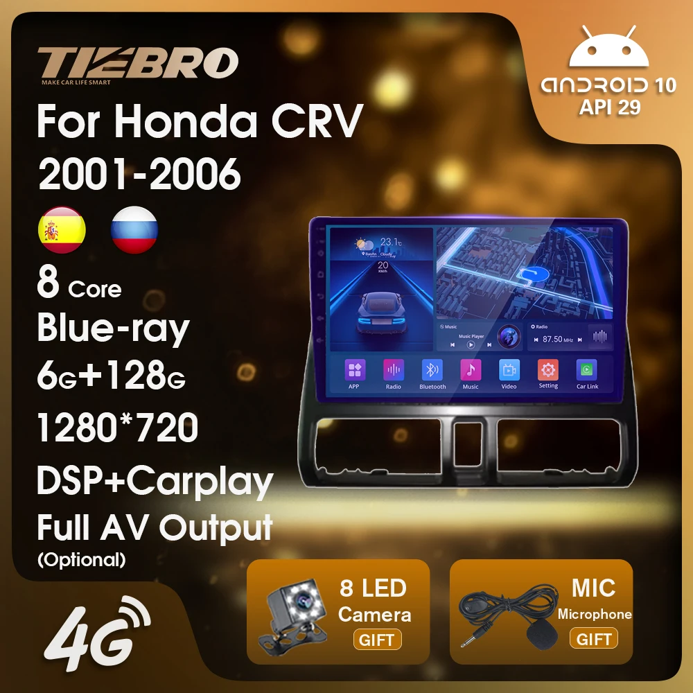 Автомагнитола TIEBRO 2DIN Android 10 для Honda CRV 2001-2006 Blu-Ray IPS QLED автомобильное радио GPS навигация Автомобильный приемник Bluetooth плеер