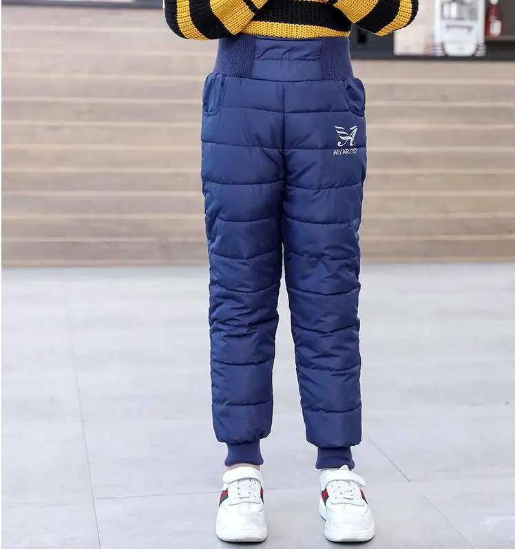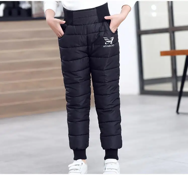 Зимние повседневные штаны для мальчиков и девочек, плотные теплые брюки с хлопковой подкладкой, водонепроницаемые лыжные брюки, подростковые эластичные леггинсы с высокой талией