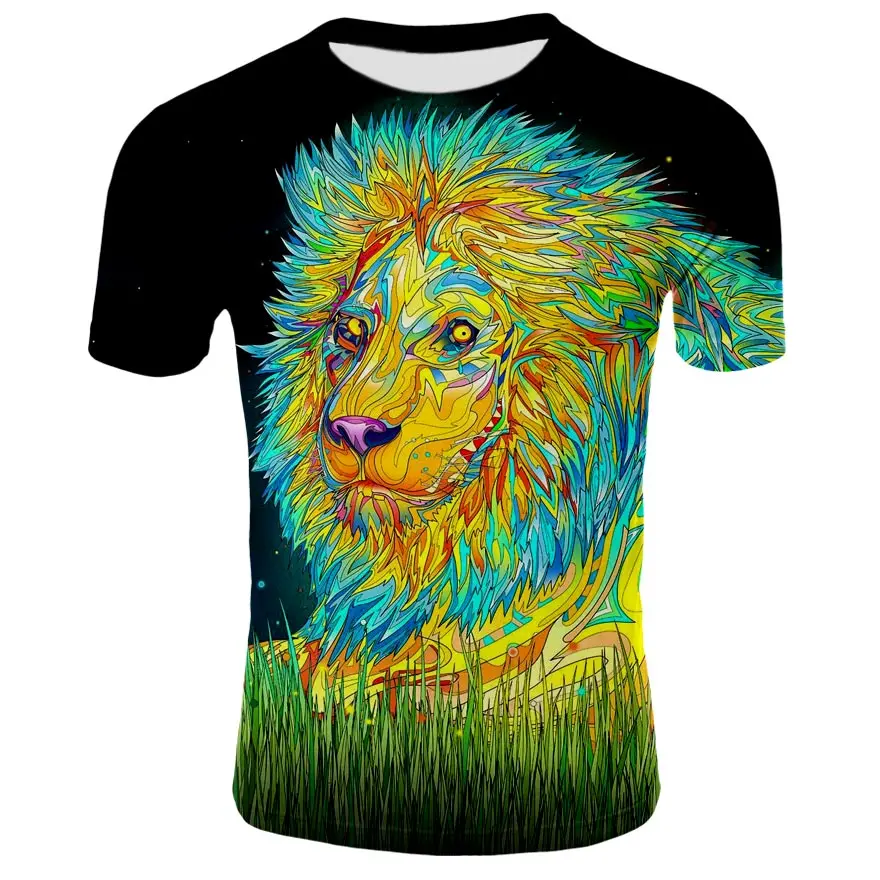Футболка мужская оверсайз с 3d-рисунком льва, модная дышащая Повседневная рубашка с коротким рукавом, с принтом животного, с О-образным вырезом, в стиле унисекс