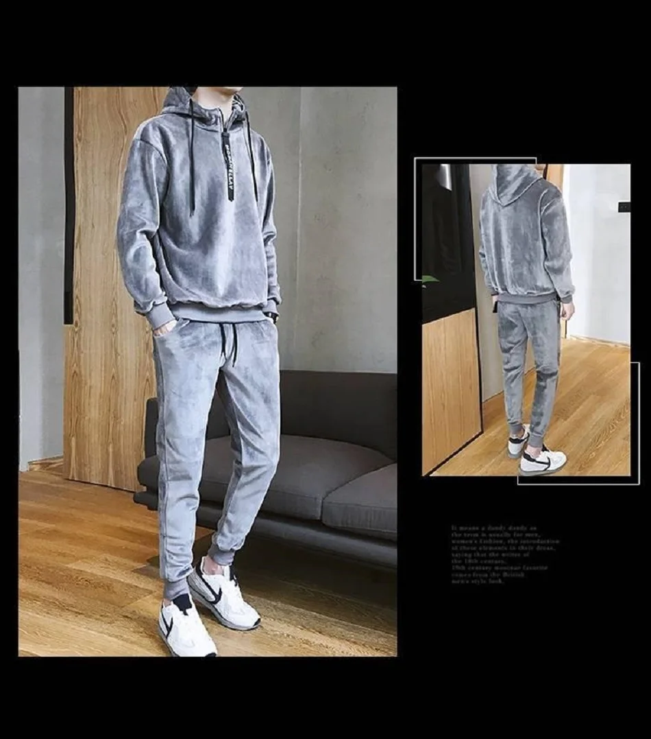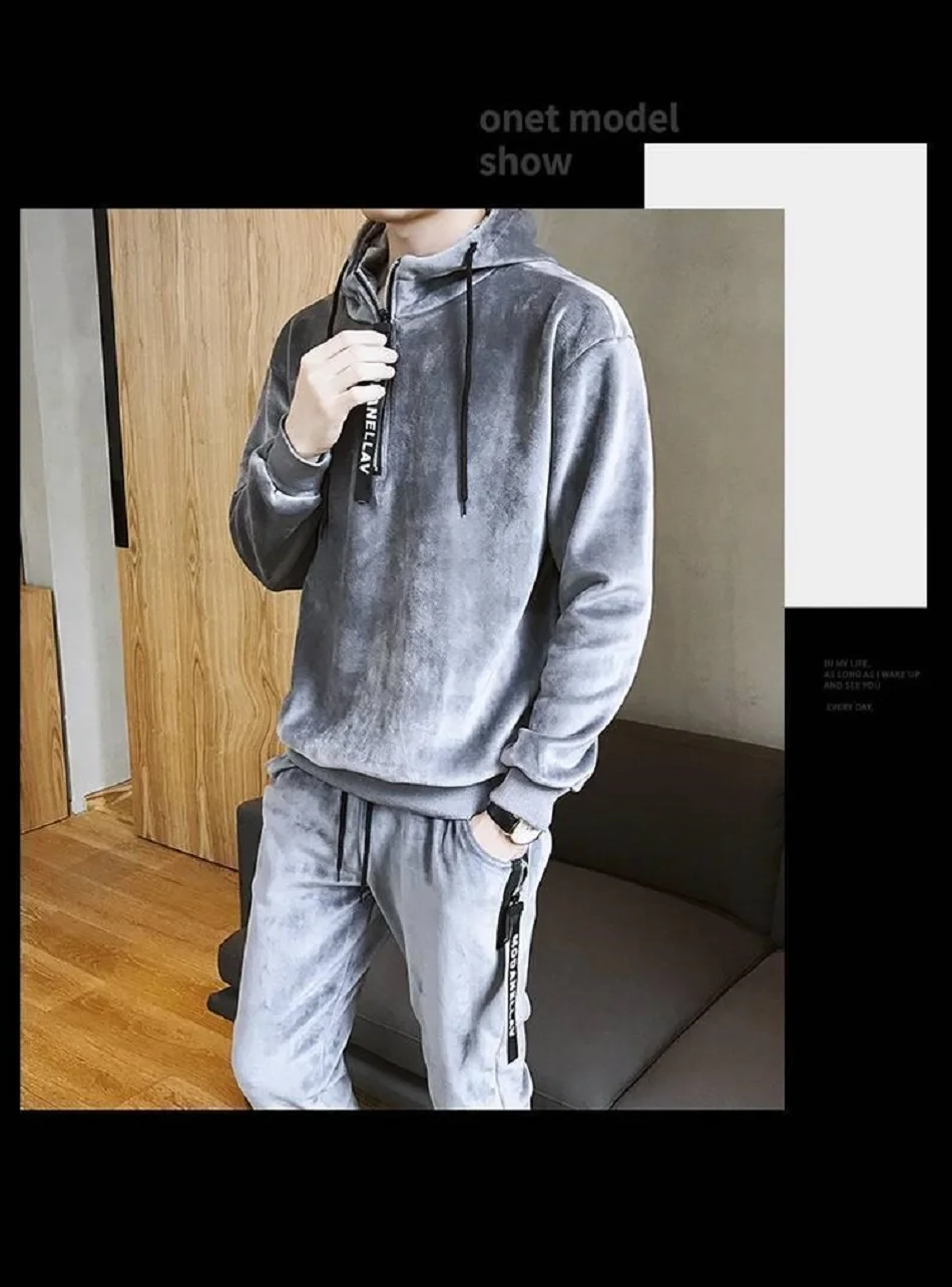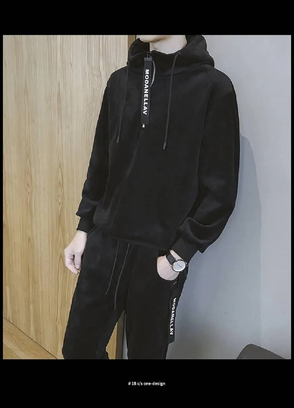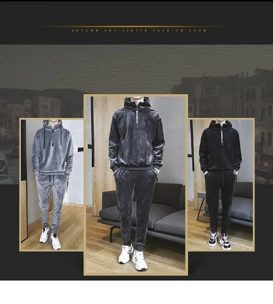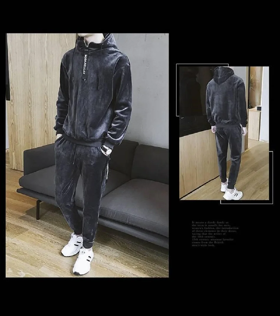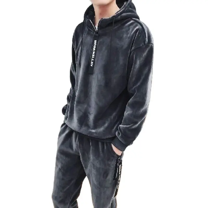 Мужской свитшот, костюм на весну и осень, корейская мода, Золотая Бархатная ткань, толстовка + брюки, мужские предметы первой необходимости, толстовка