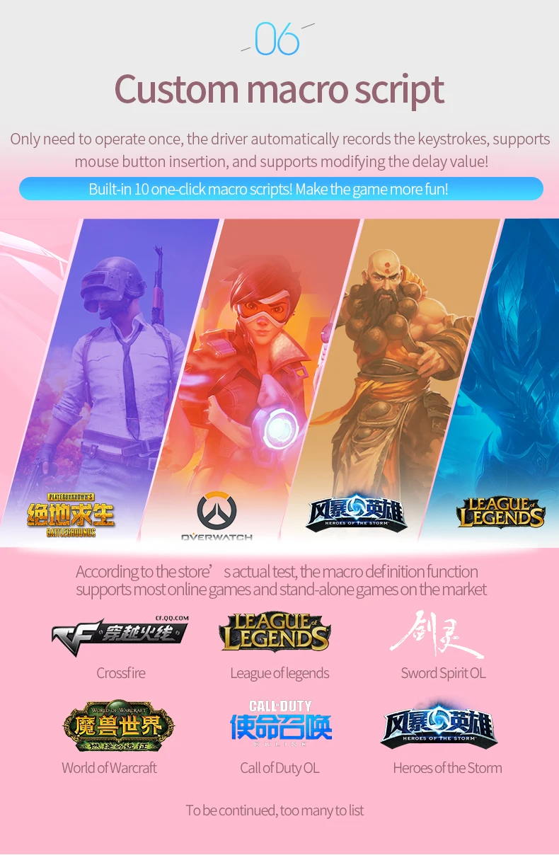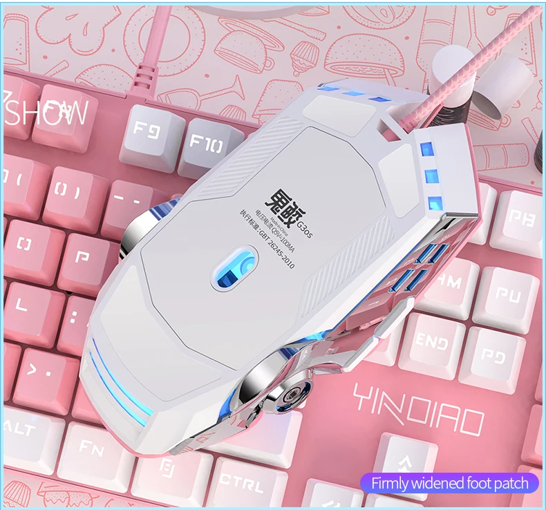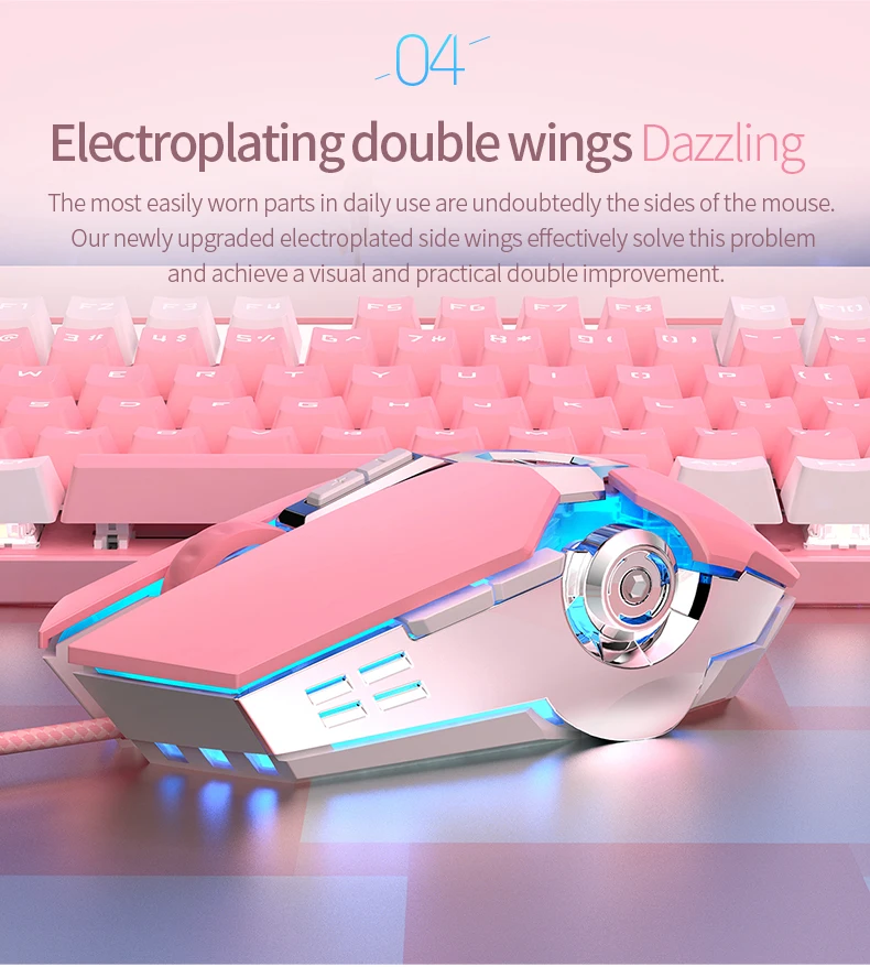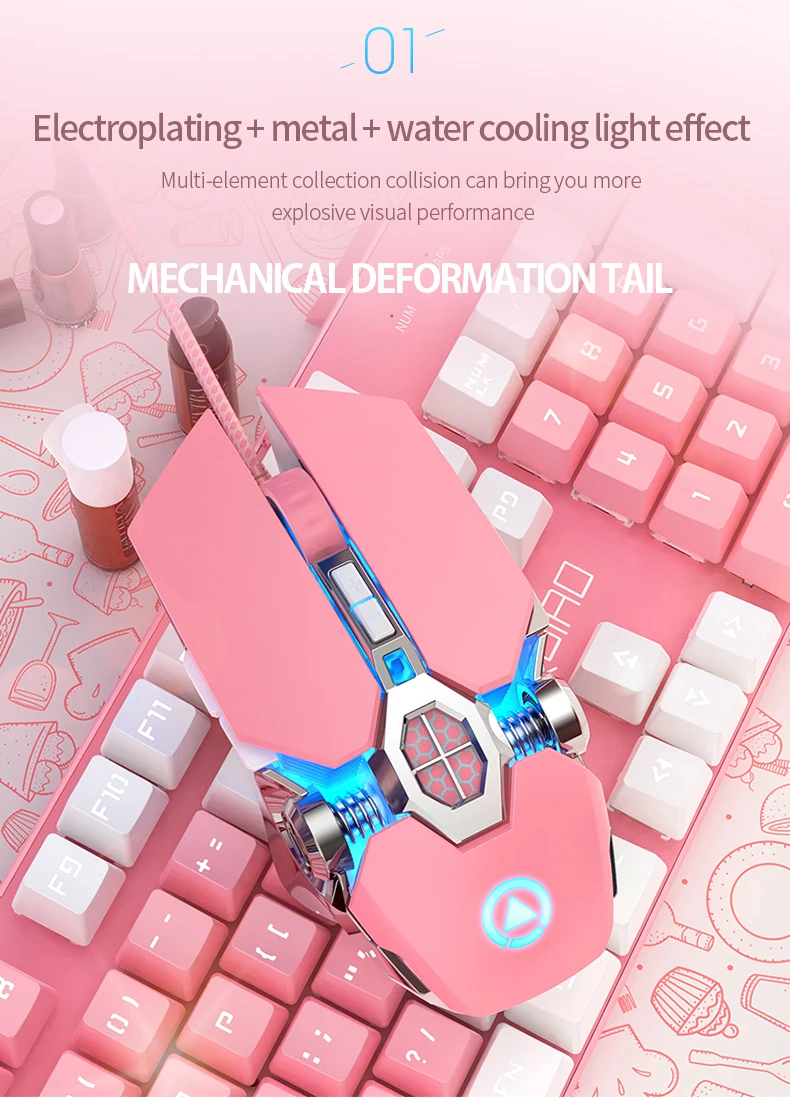 Бесшумная розовая проводная мышь, 6 клавиш, 7 ярких цветов, светодиодная подсветка, для игр, электронных видов спорта, компьютерные аксессуары
