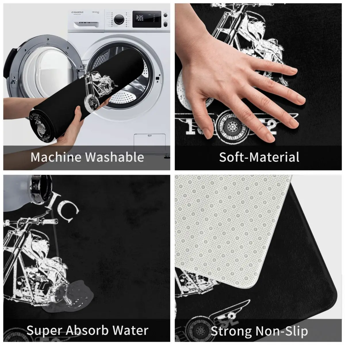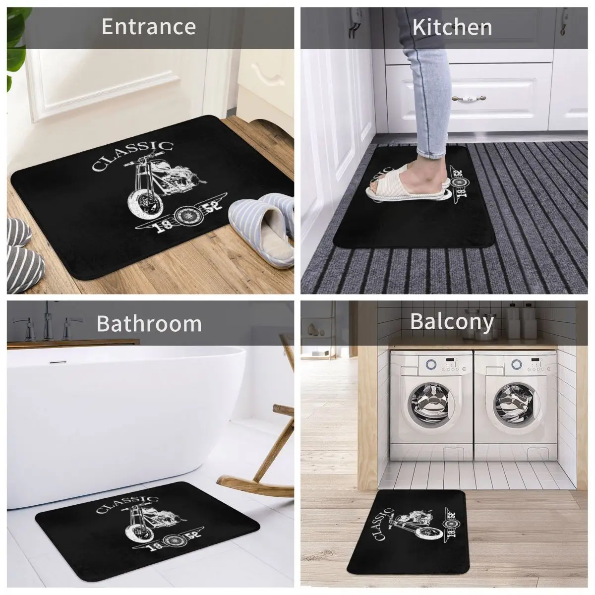 Классический мотоциклетный коврик, подкладка для ног, полиэстер, нескользящий, водонепроницаемый, маслостойкий, для входа, кухни, спальни, балкона, туалета