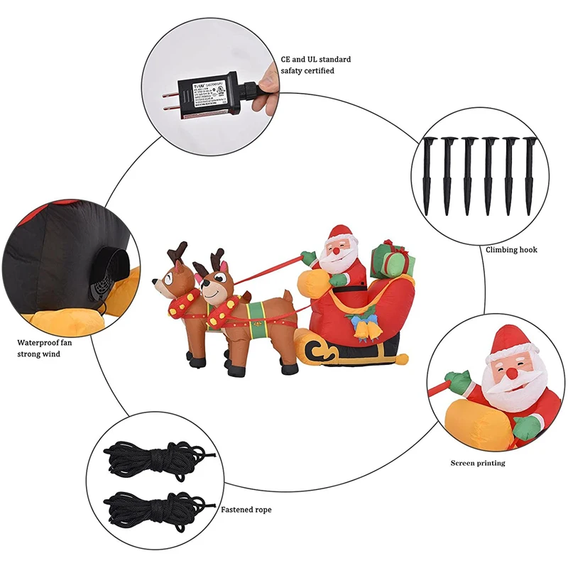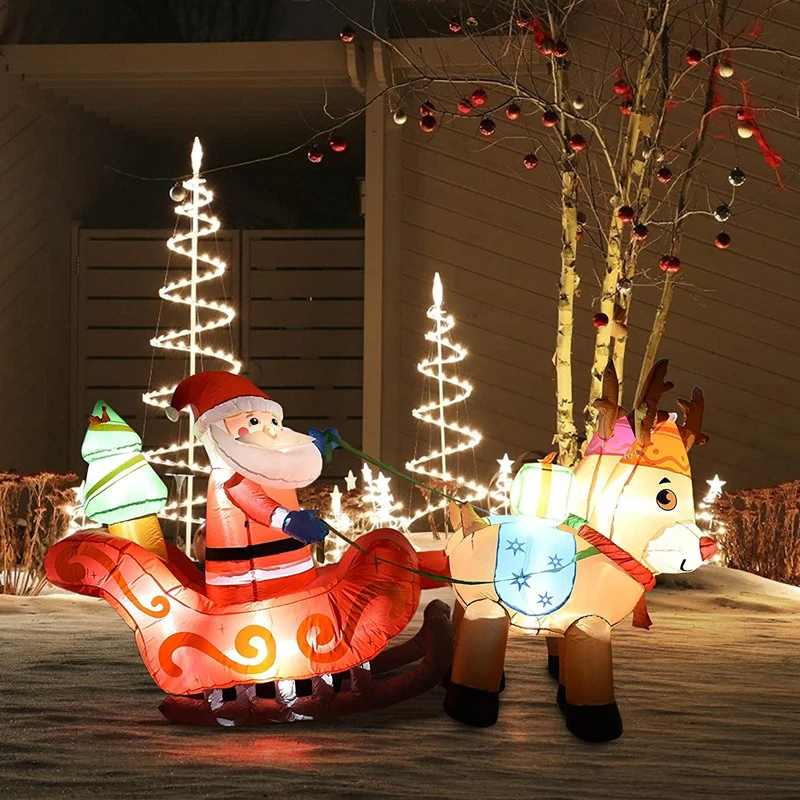213 см7 футов Рождественский надувной Санты олень сани наружный Дек...