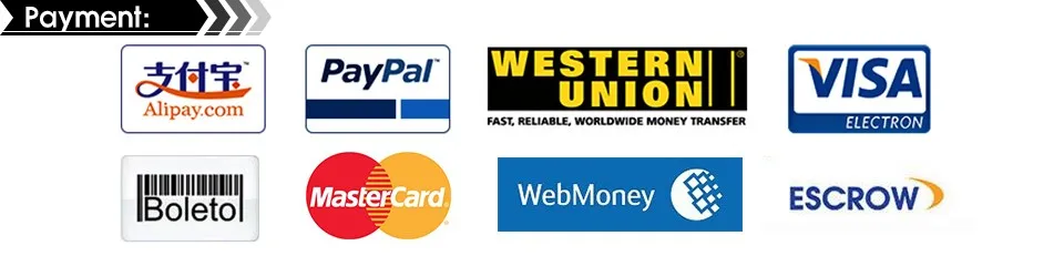 О оплате: мы поддерживаем оплату через Кредитная карта/Paypal / Escrew / Alipay / Western Union/банковский перевод и т. Д. Если у вас есть какие-либо проблемы с оплатой, пожалуйста, свяжитесь с нами.