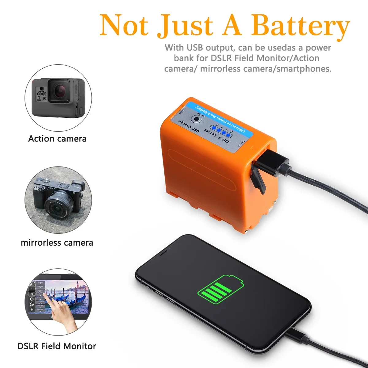 ✨. Широкая совместимость: подходит для всех устройств, которые принимают аккумуляторы Sony NP-F, такие как камеры Sony и видеокамеры Handycam, SAMTIAN Neewer YONGNUO VILTROX серии светодиодный видео светильник, кольцевой светильник, Atomos recorder, Tilta Nano, blackmagic Pocket 4K, BMPCC4K, HDMI полевой монитор, Feelworld monitor и т. Д.