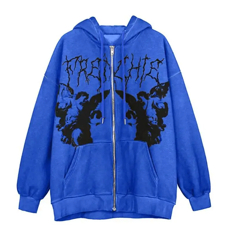 Женская уличная Толстовка в стиле хип-хоп, осенне-зимняя куртка с принтом ангела, пальто, женская верхняя одежда на молнии, большие размеры, 2021
