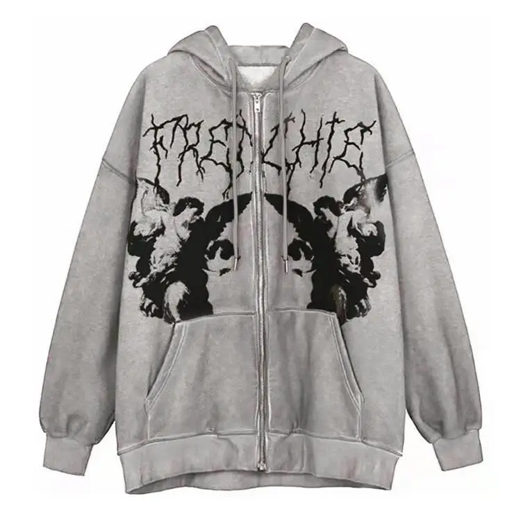 Толстовка МужскаяЖенская Y2K, с капюшоном на молнии, с принтом анге...