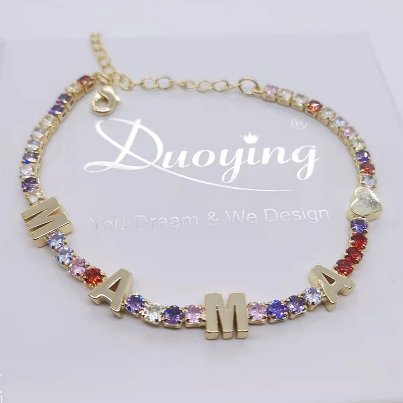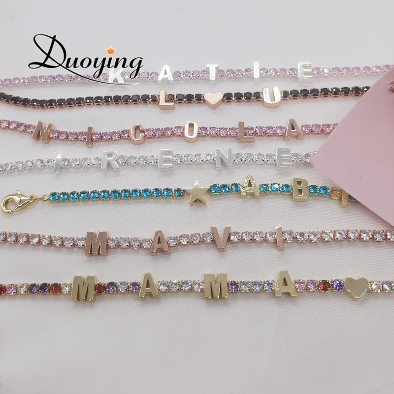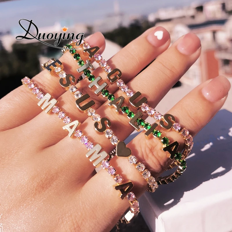 Браслет-цепочка DUOYING с надписью на заказ и цветным цирконием