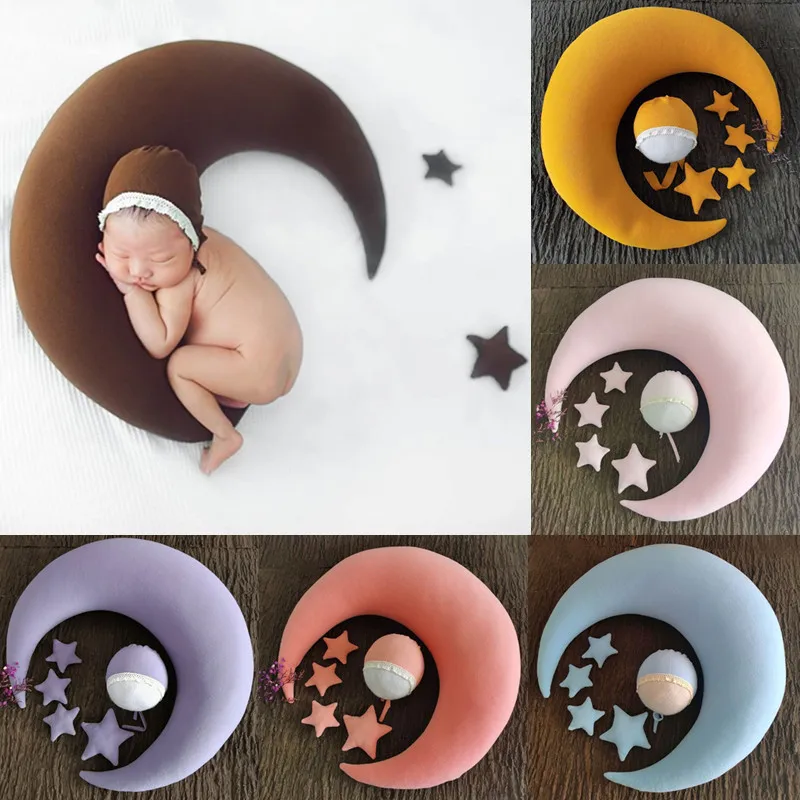 Детская подушка, реквизит для фотосъемки новорожденных, милая детская шапка, сумка в форме бобы, луна, звезды, набор для фотосъемки новорожденных, подарки для новорожденных